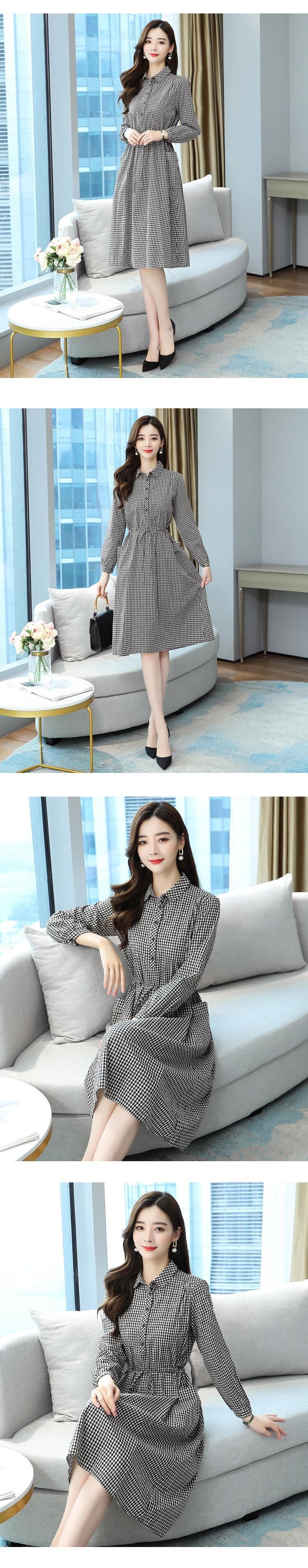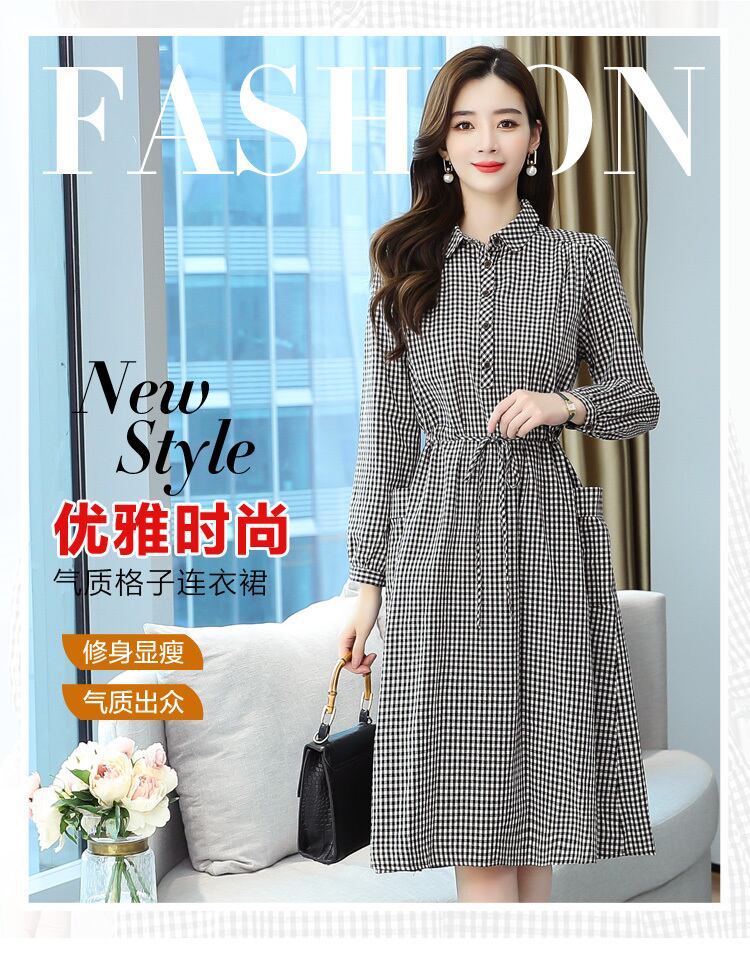 格子柄ドレス オータムルーズ薄手カジュアルスカート ロング 大きめサイズ 秋物 muto4224007615