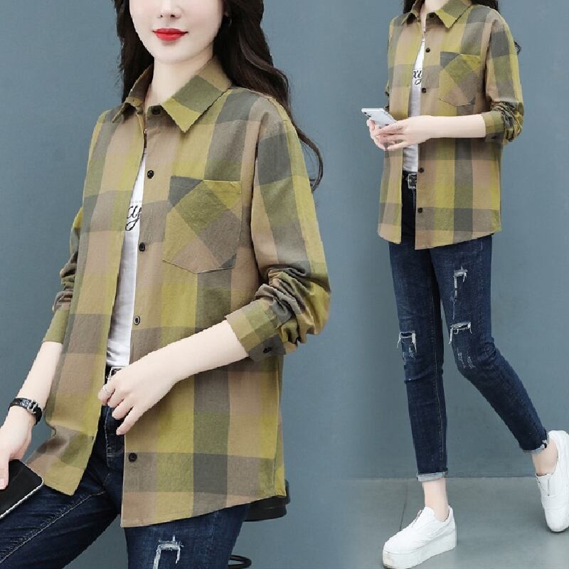 格子柄シャツ オータムルーズ薄手コート トップス 大きめサイズ 秋物 muto53407582790