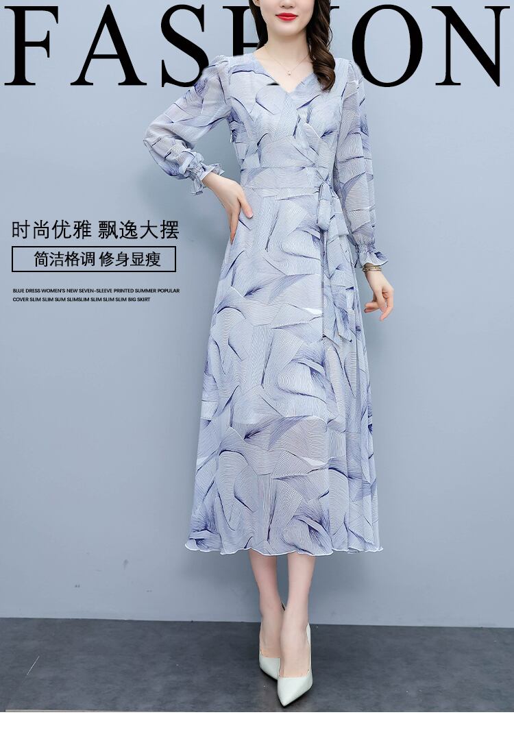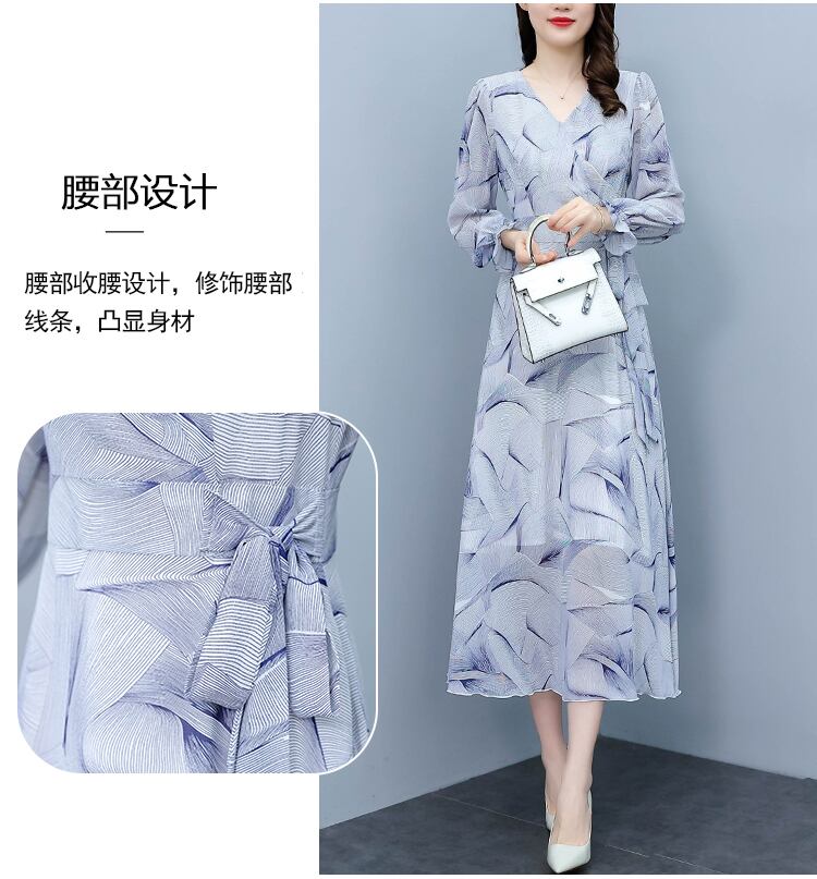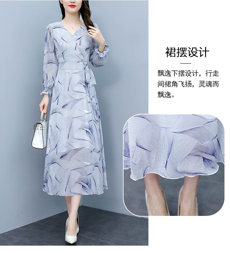 プリントシフォンドレス オータムウェストスカート ロング 大きめサイズ 秋物 muto23814337745