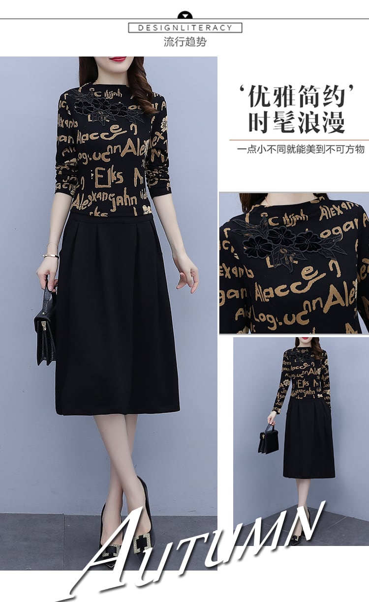 フローラルドレス オータムスカート 大きめサイズ 秋物 花柄 ステッチ muto36869652625