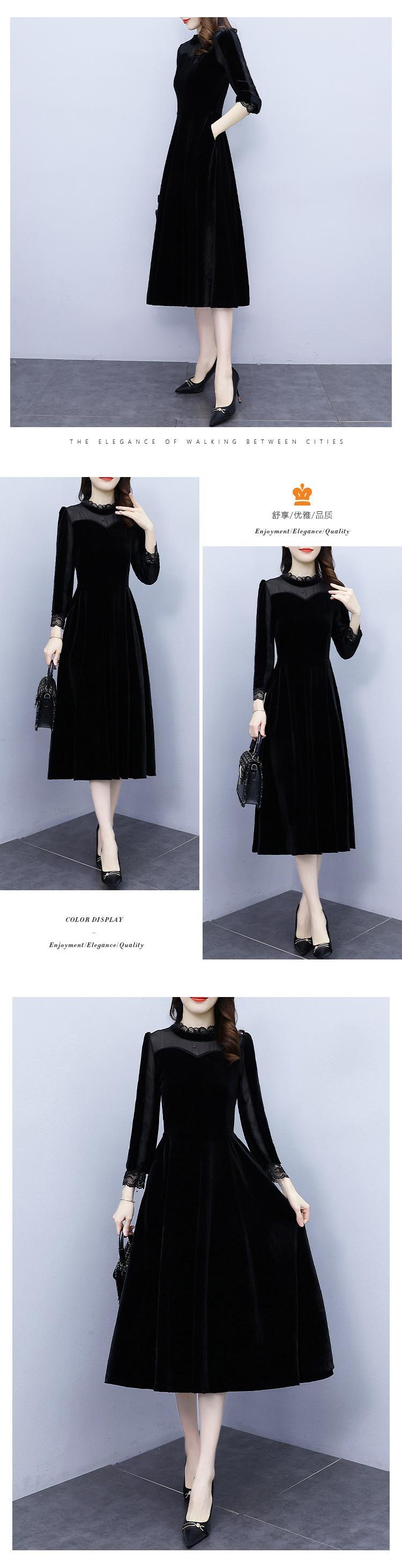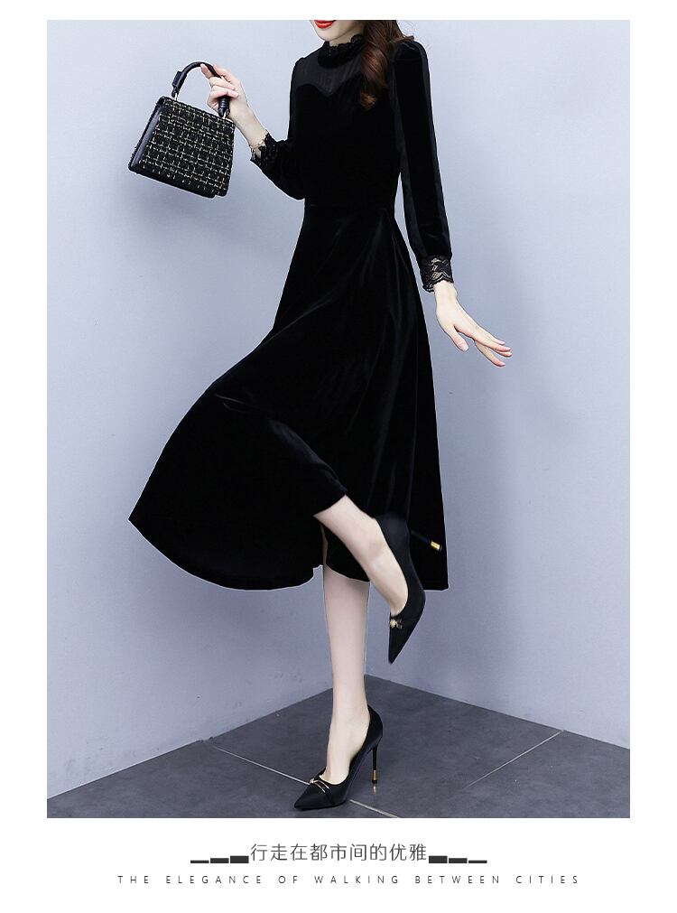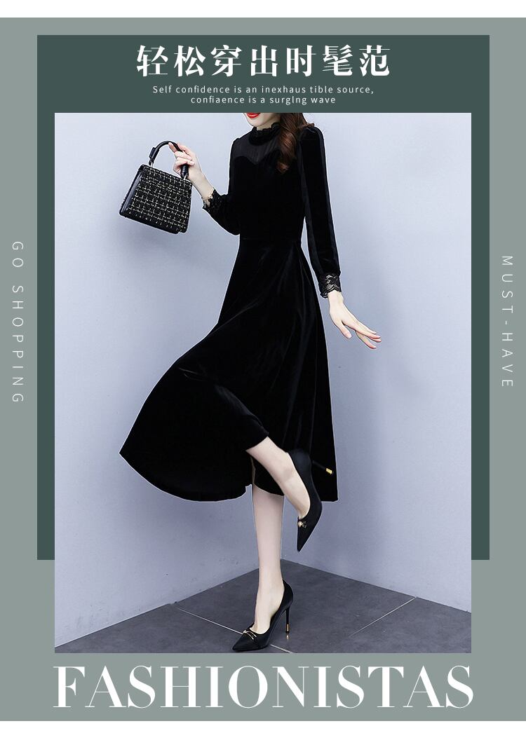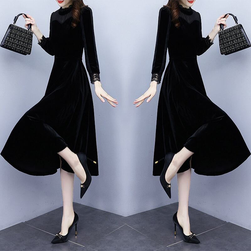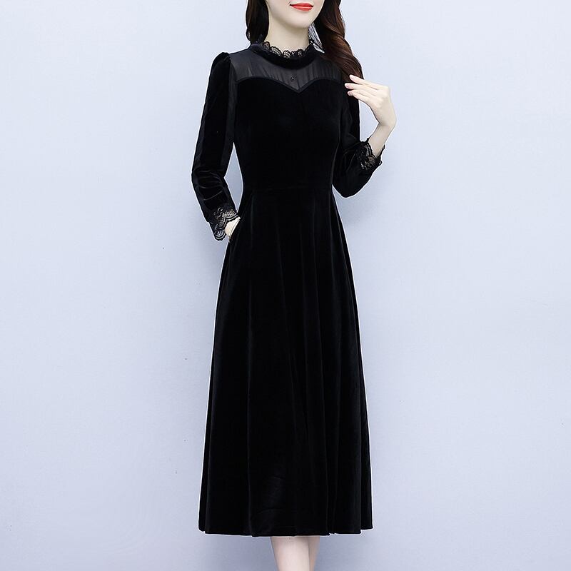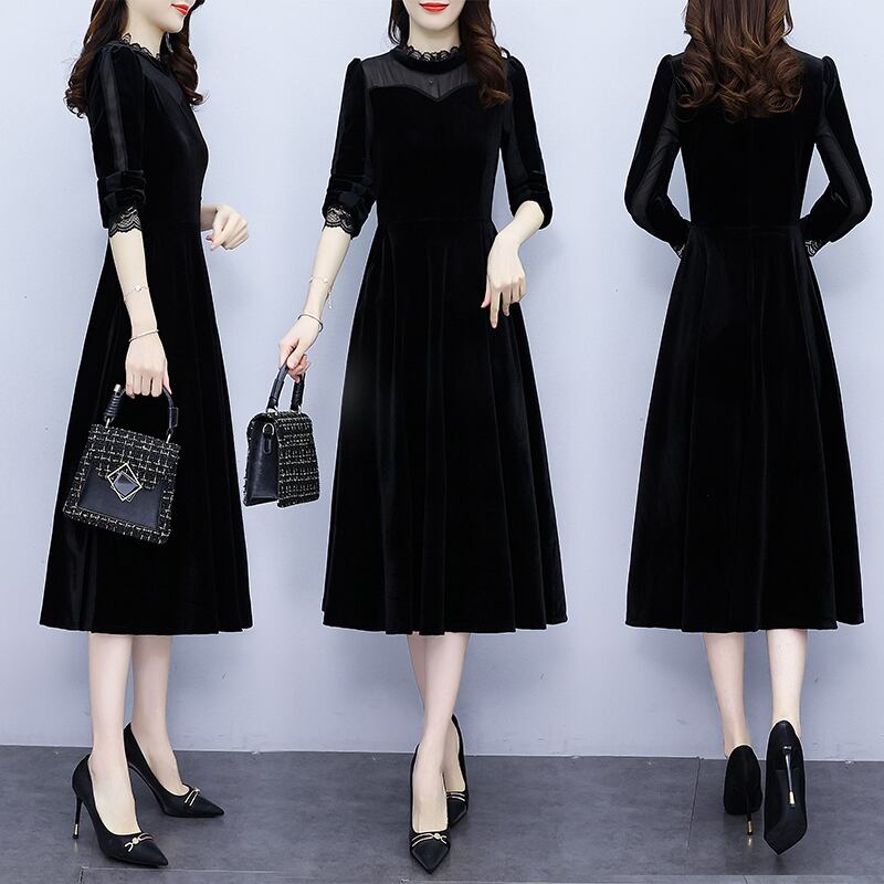 ゴールドベルベットドレス オータム薄手スカート ロング 大きめサイズ 秋物 muto38370953547