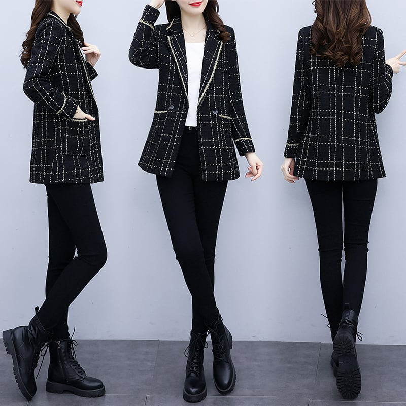 ジャケット オータムスリム格子柄 大きめサイズ 秋物 muto19243863330