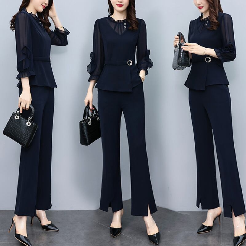 シフォンオータムパンツ セット レッド 大きめサイズ 秋物 ステッチ muto64475571063