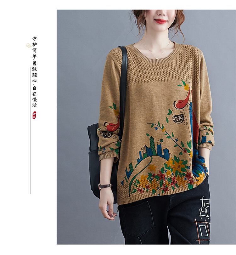 スタンダードスリムラウンドネックプルオーバー ニットセーター オータムトップス ルーズシャツ レトロ 大きめサイズ 秋物 Oネック muto91070030115