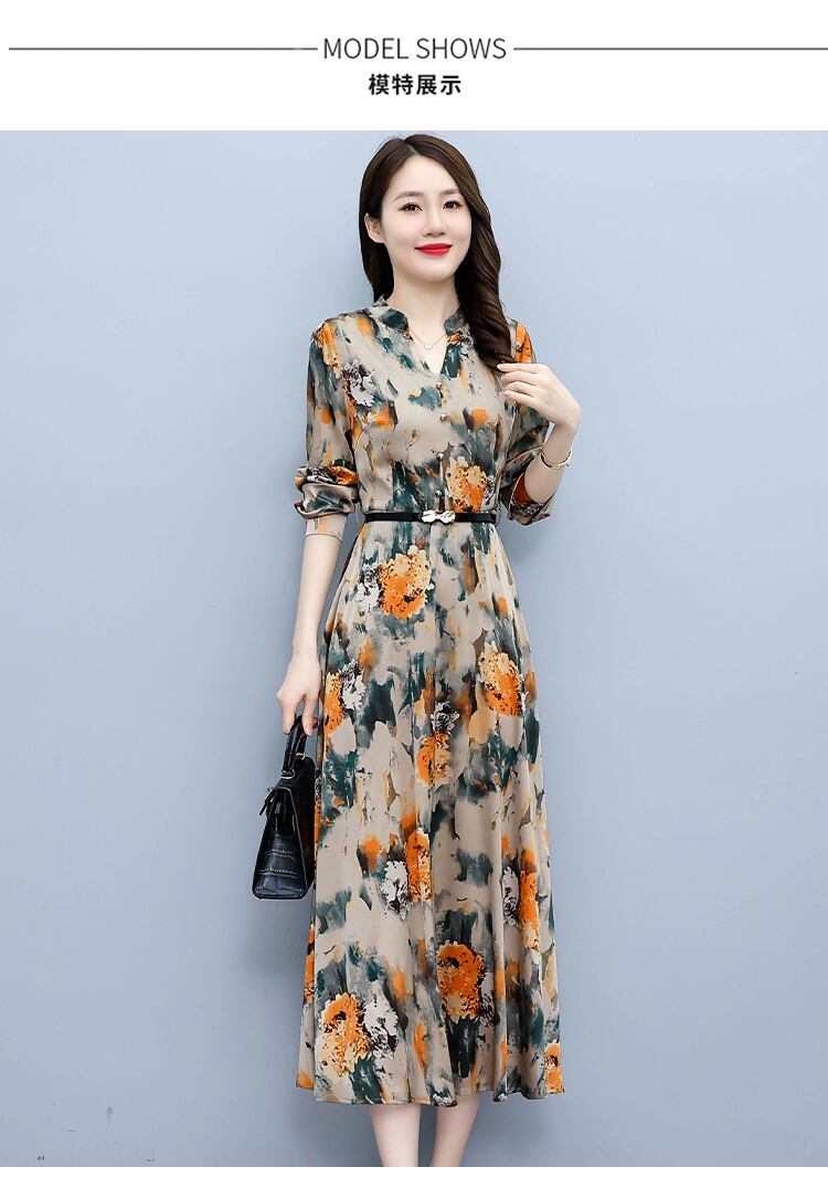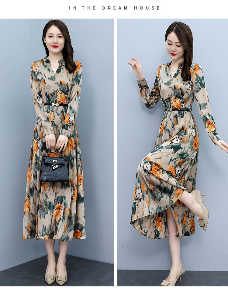 サテンドレス オータムスリムプリントスカート ロング 大きめサイズ 秋物 muto98636031961
