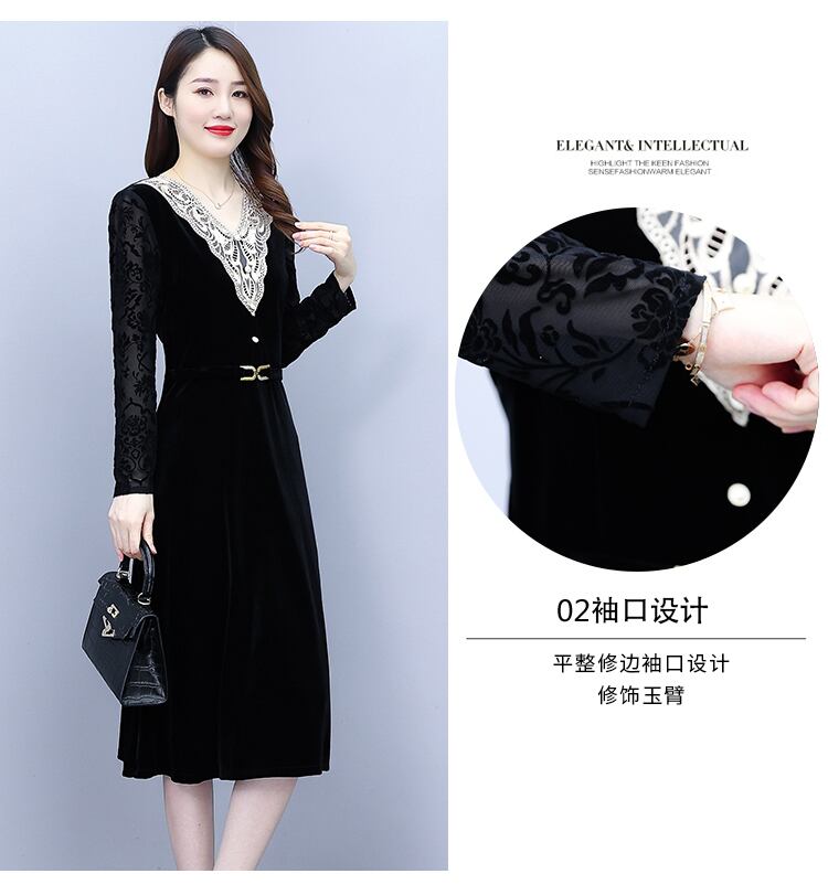 ゴールドベルベットドレス オータムスタイル薄手スカート ロング 大きめサイズ 秋物 muto66192125530