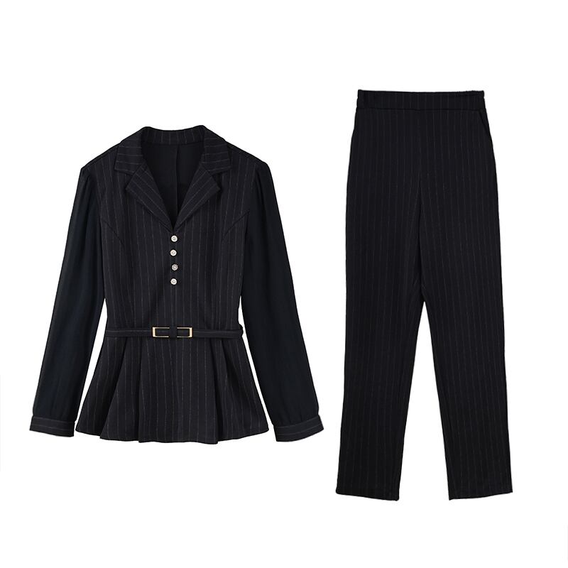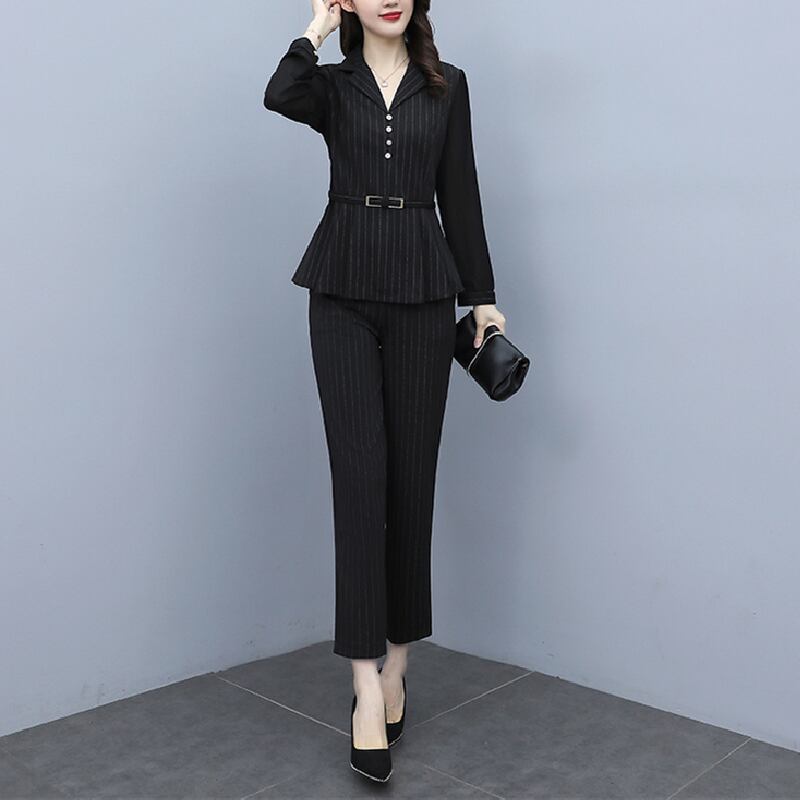 ストライプオータム薄手パンツ セット 大きめサイズ 秋物 muto34363775994