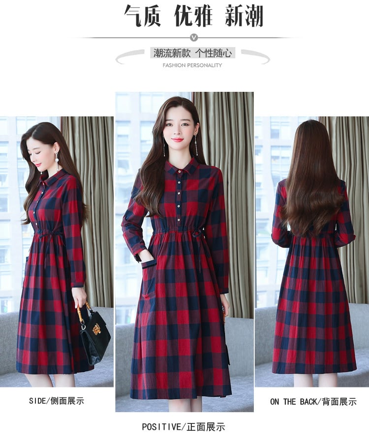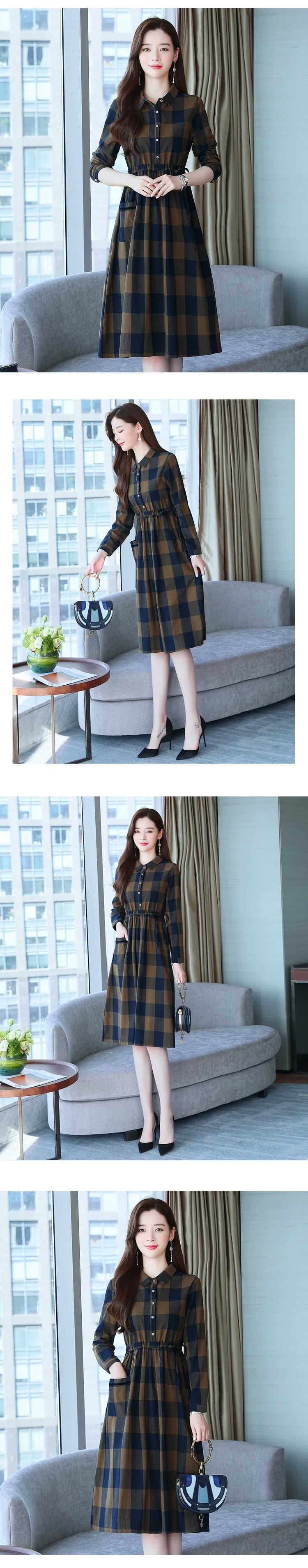 格子柄ドレス オータムウェスト薄手スタイルスカート 大きめサイズ 秋物 muto33058537980