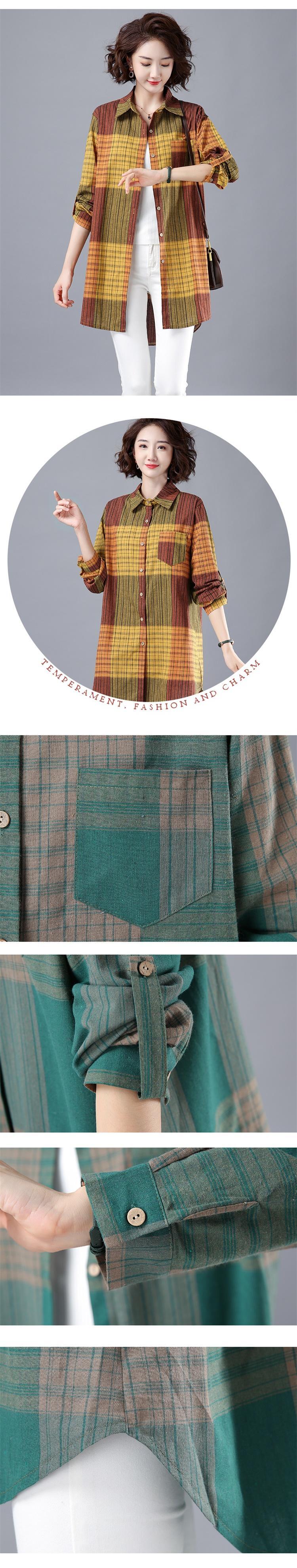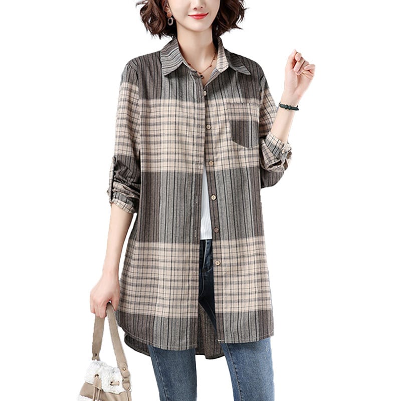 格子柄シャツ オータムカジュアルルーズ薄手カーディガンコート ロング 大きめサイズ 秋物 muto10949037383