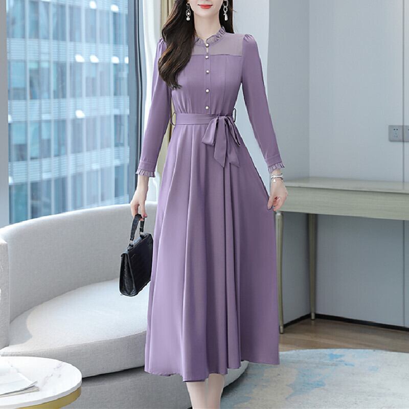 サテンドレス オータムウェストスリムロングスカート 大きめサイズ 秋物 muto99147470604
