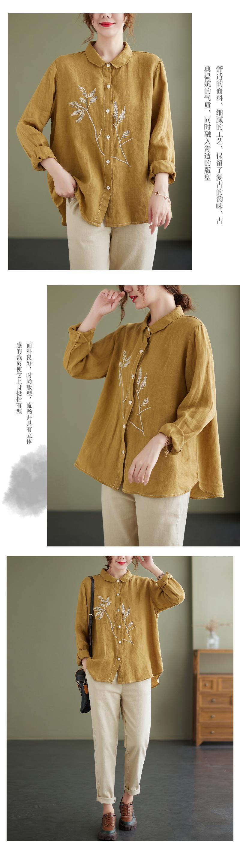 ヴィンテージシャツスリム長袖スリーブトップス ロング レッド 刺繍 大きめサイズ ビンテージ muto30345910293