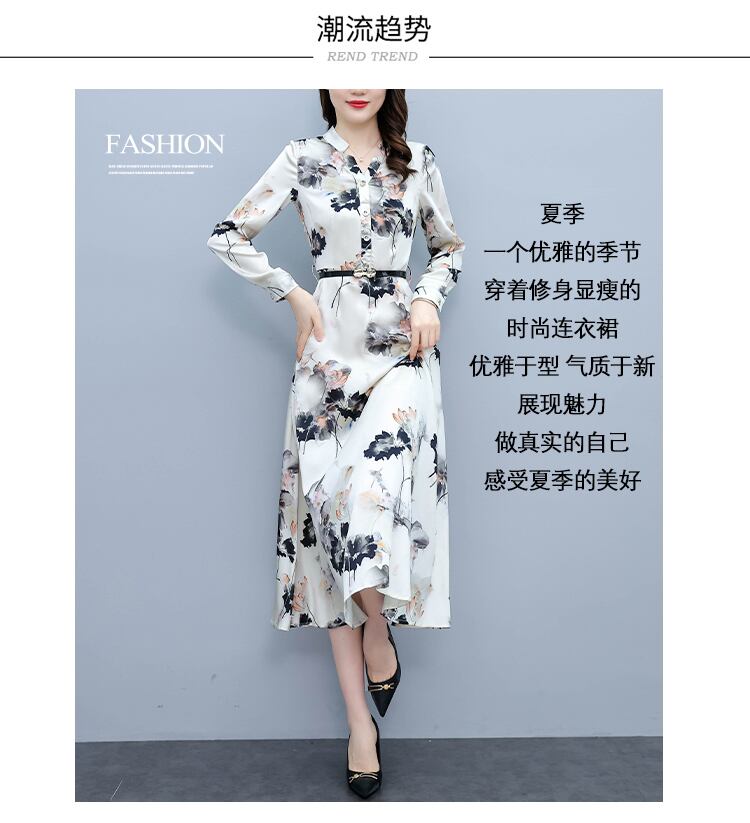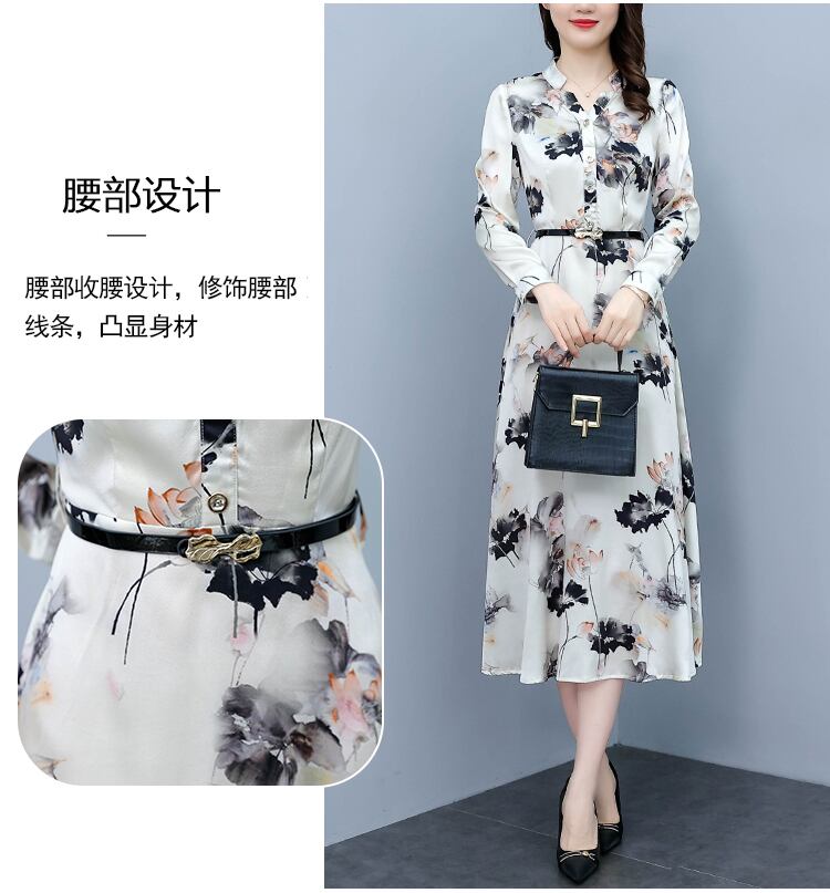 サテンプリント柄ドレス オータムスリムロングスカート 大きめサイズ 秋物 muto75320693119