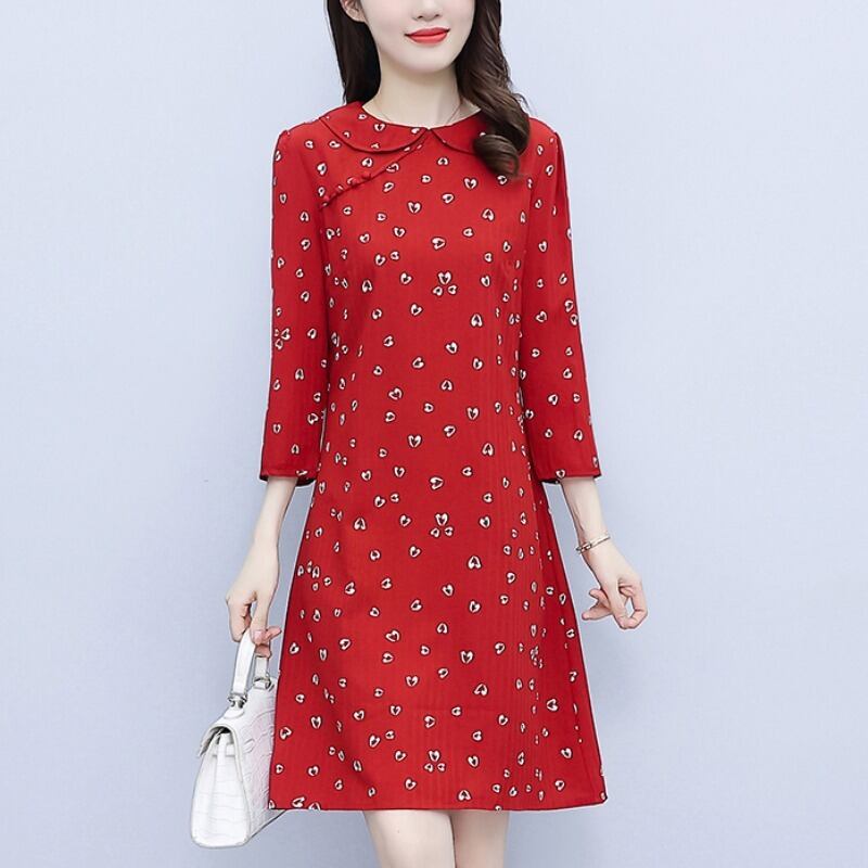 フローラルカラードレス オータムスリムスカート 大きめサイズ 秋物 花柄 muto7424873019