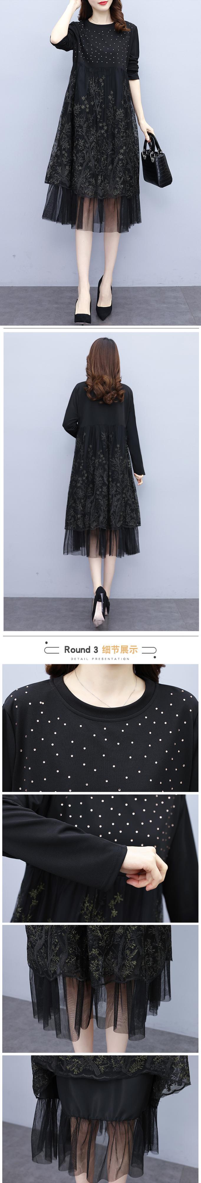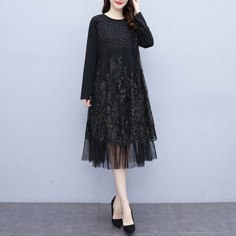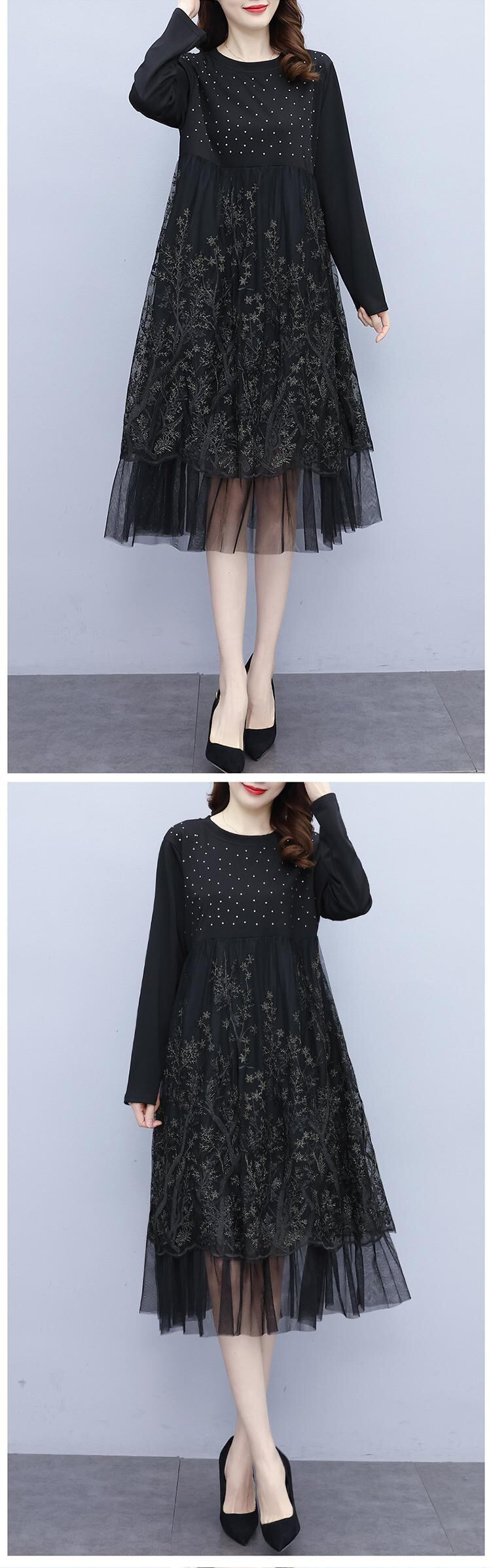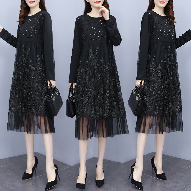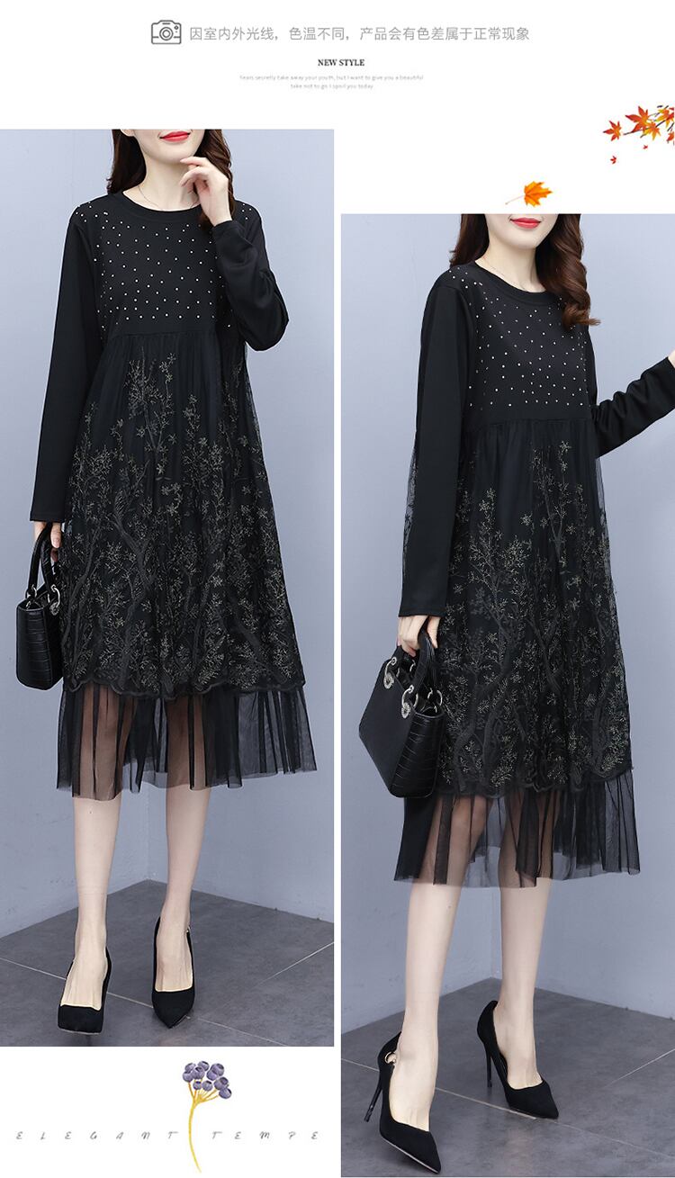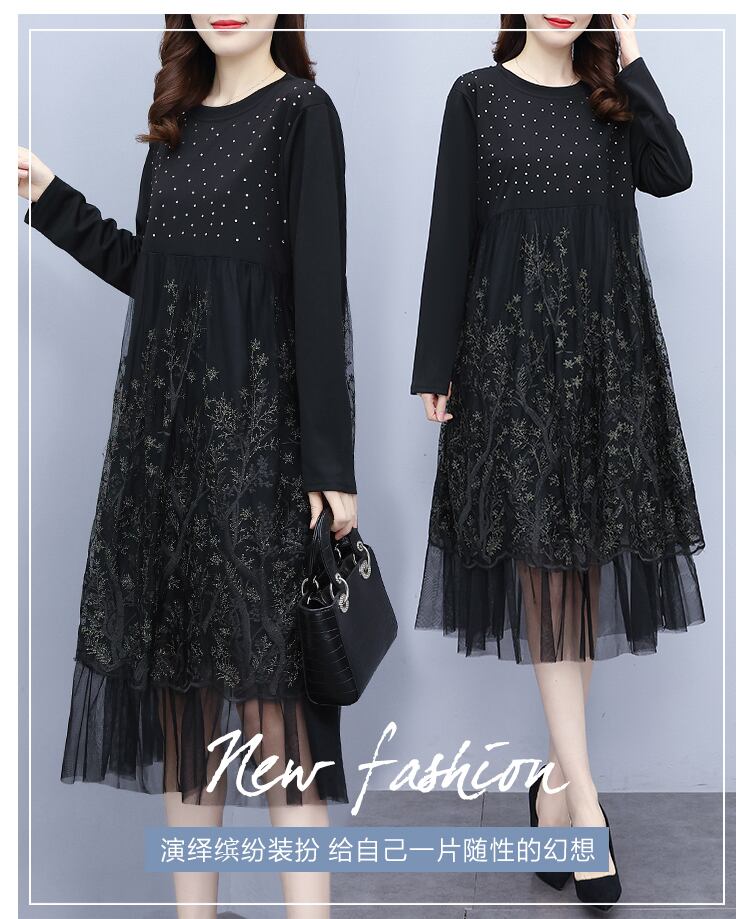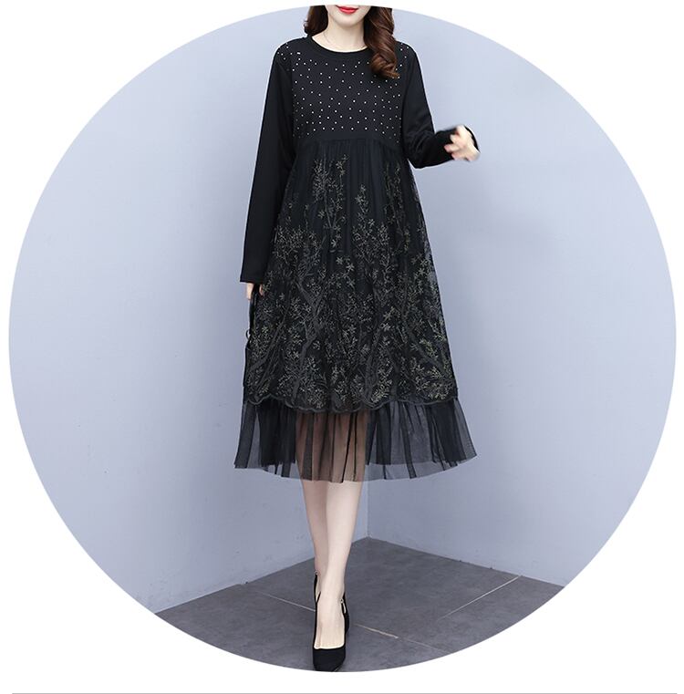 メッシュドレス オータム刺繍スリムスカート 大きめサイズ 秋物 ステッチ muto75167006210