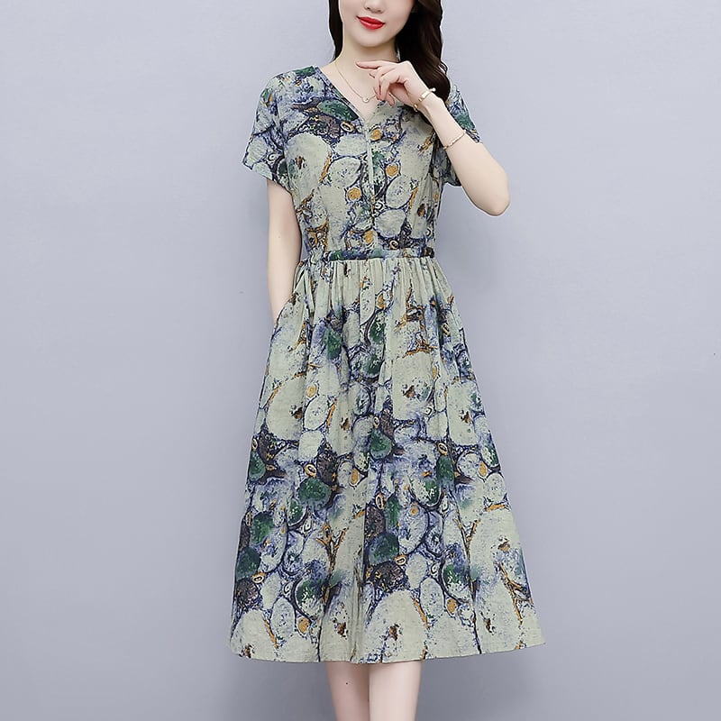 ドレス サマー薄手ルーズフローラルスカート コットン レース 大きめサイズ 夏物 花柄 レースアップ muto69004893457
