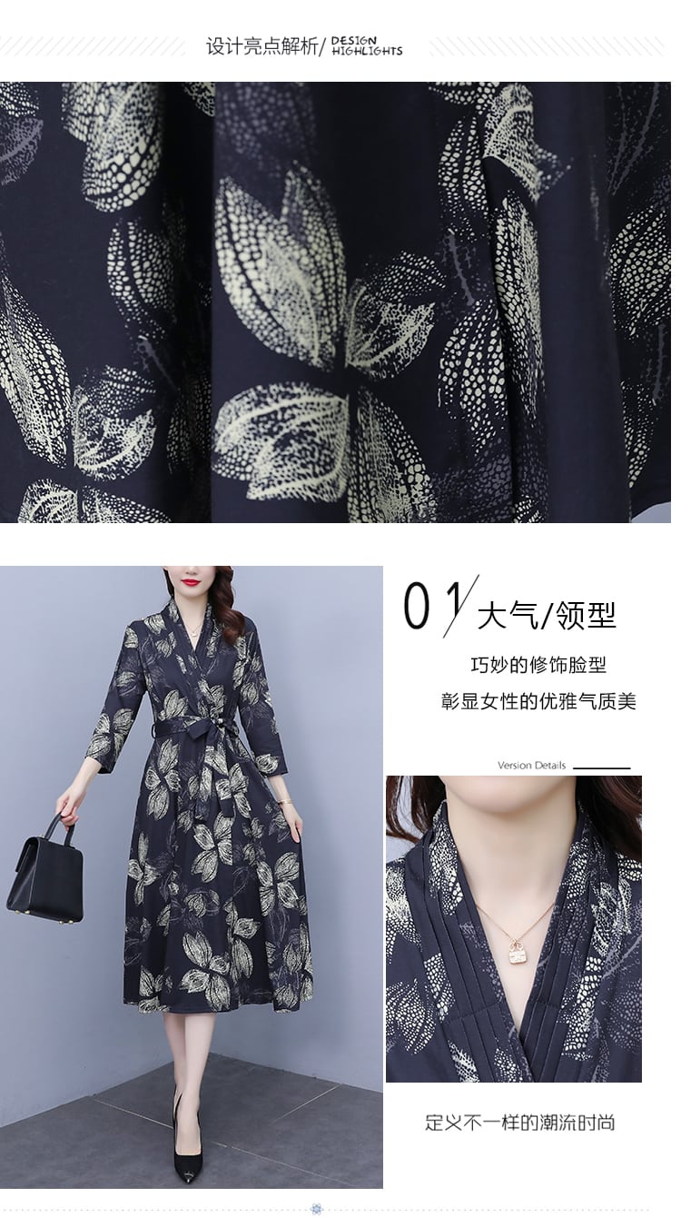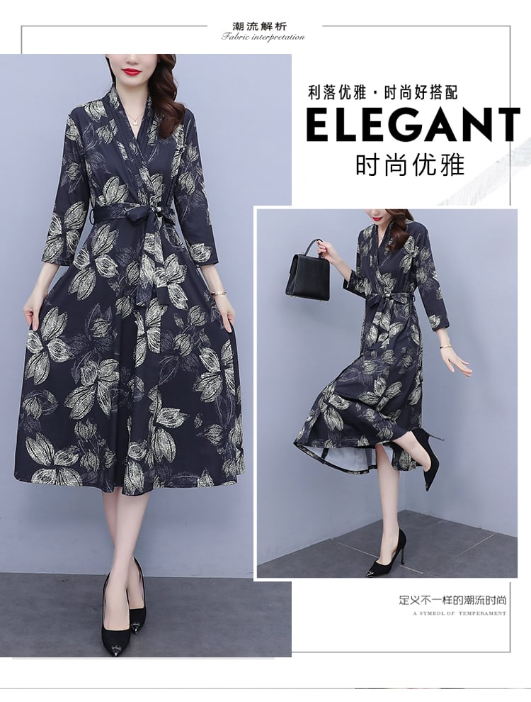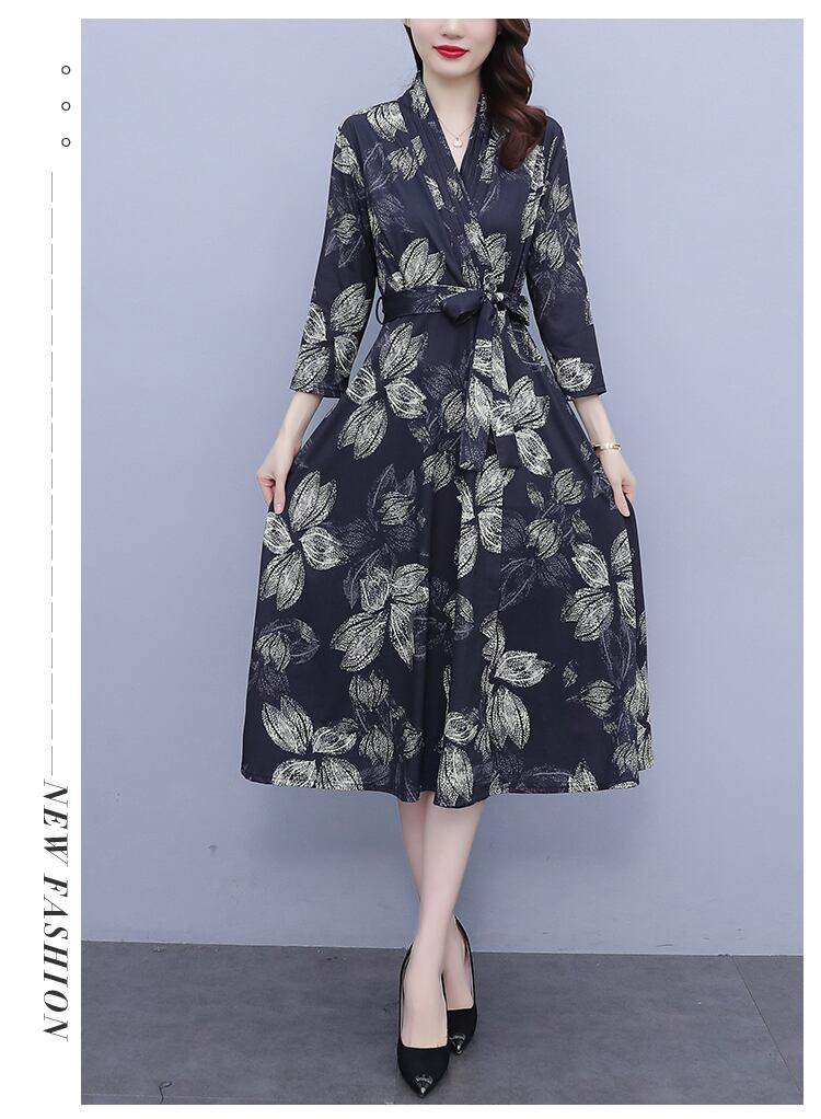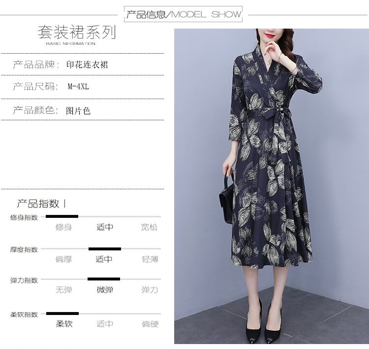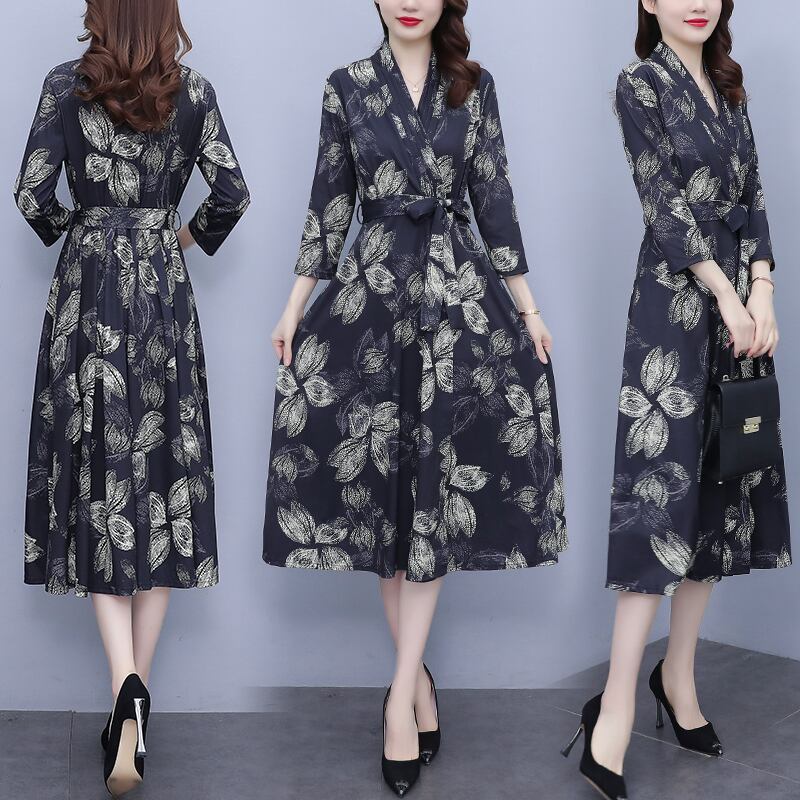 プリント柄ドレス オータム薄手ルーズスカート 大きめサイズ 秋物 muto84867617989