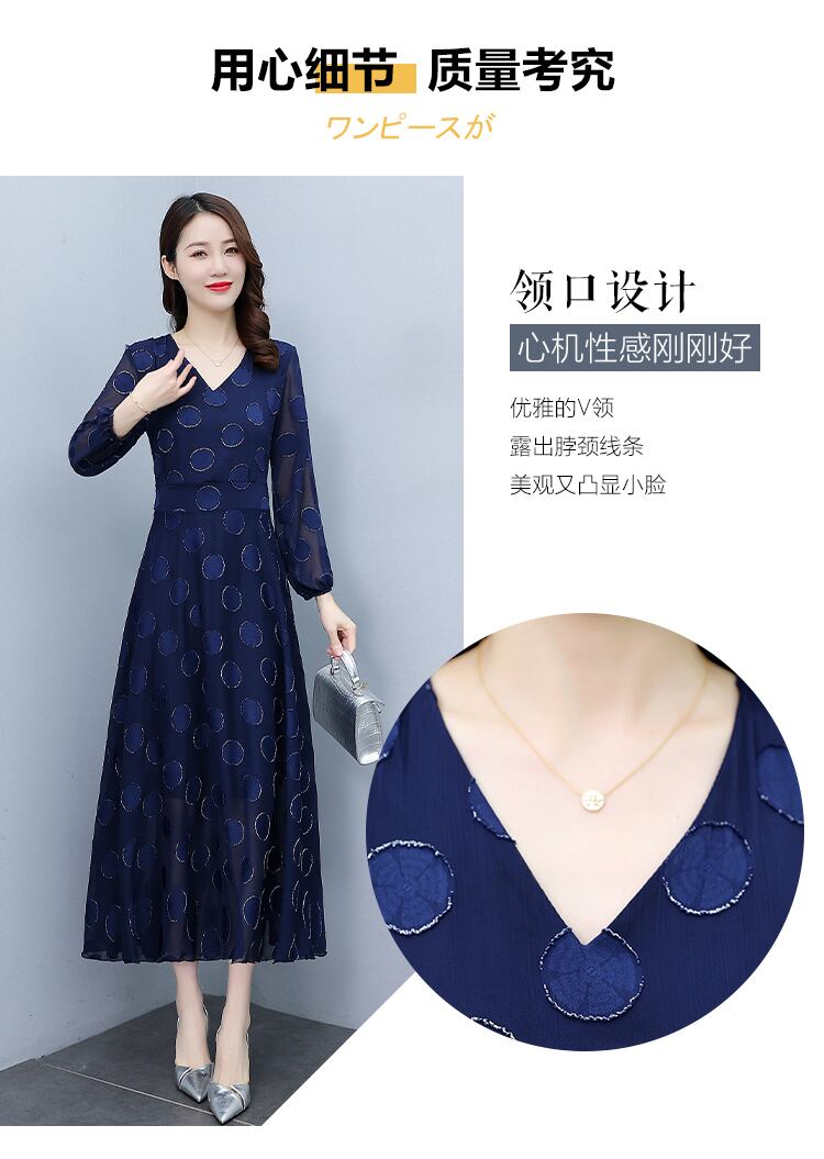 ロングドレス オータムウェストVネックスカート 大きめサイズ 秋物 muto91146096449