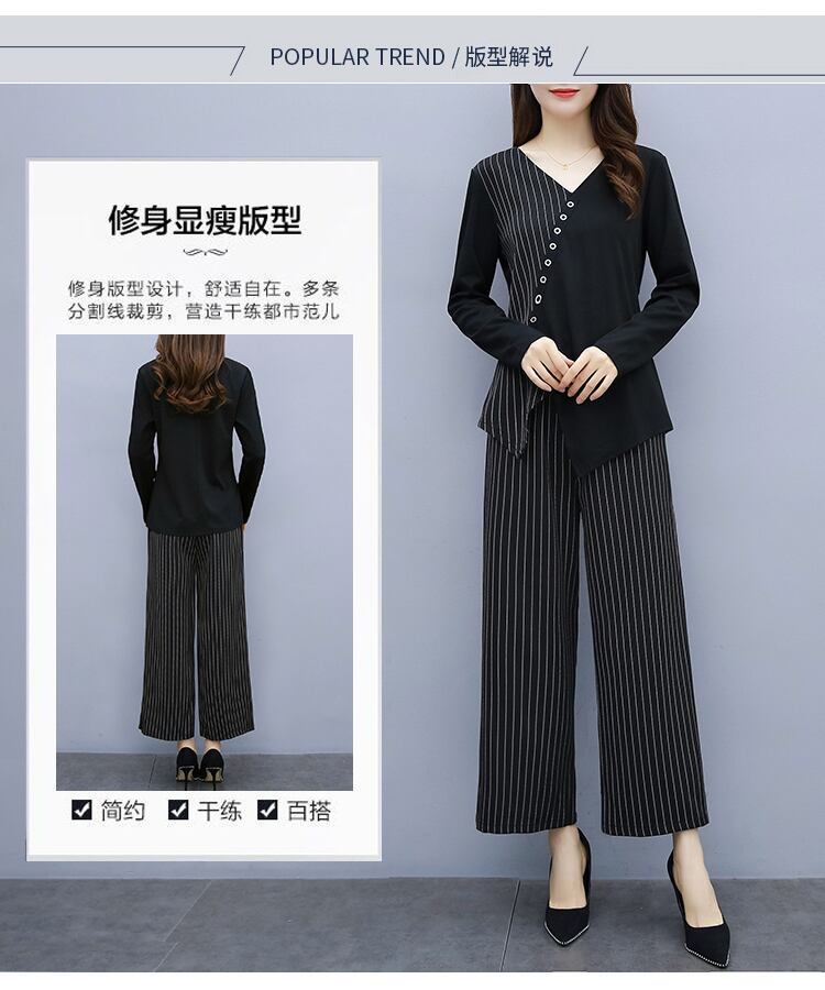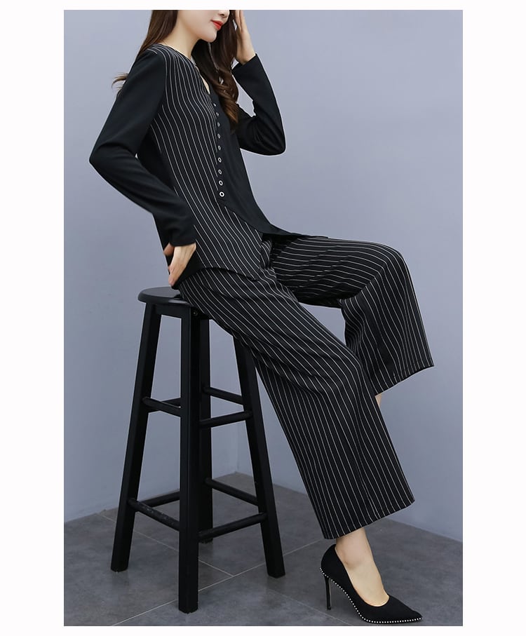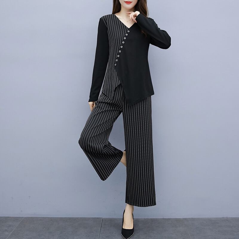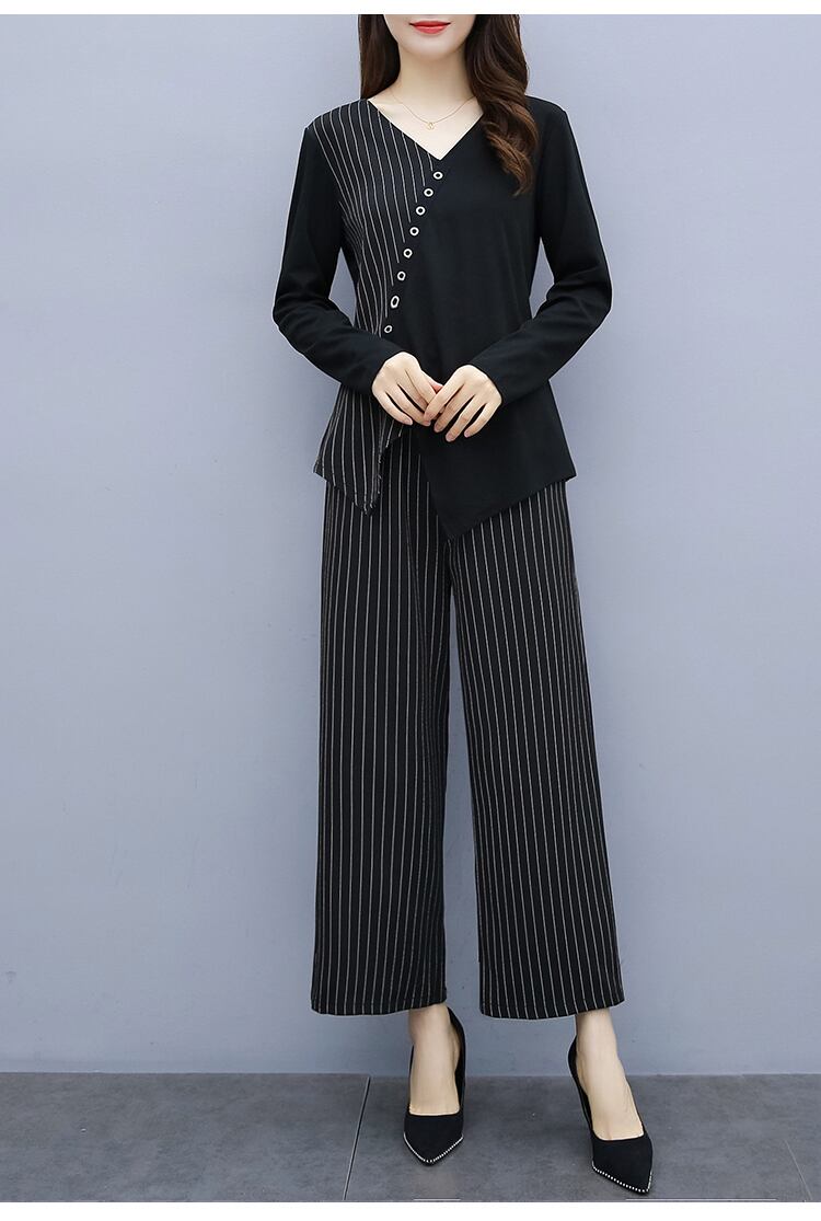薄手ストライプオータムパンツ セット 大きめサイズ 秋物 muto94990063121