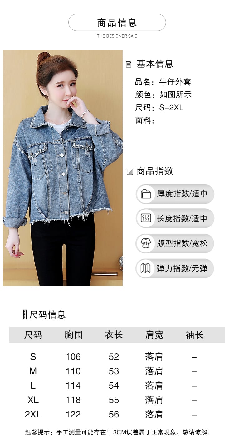 ジャケット ショートスタイルスプリングオータムルーズ薄手トップス 大きめサイズ 春物 秋物 muto72211052205