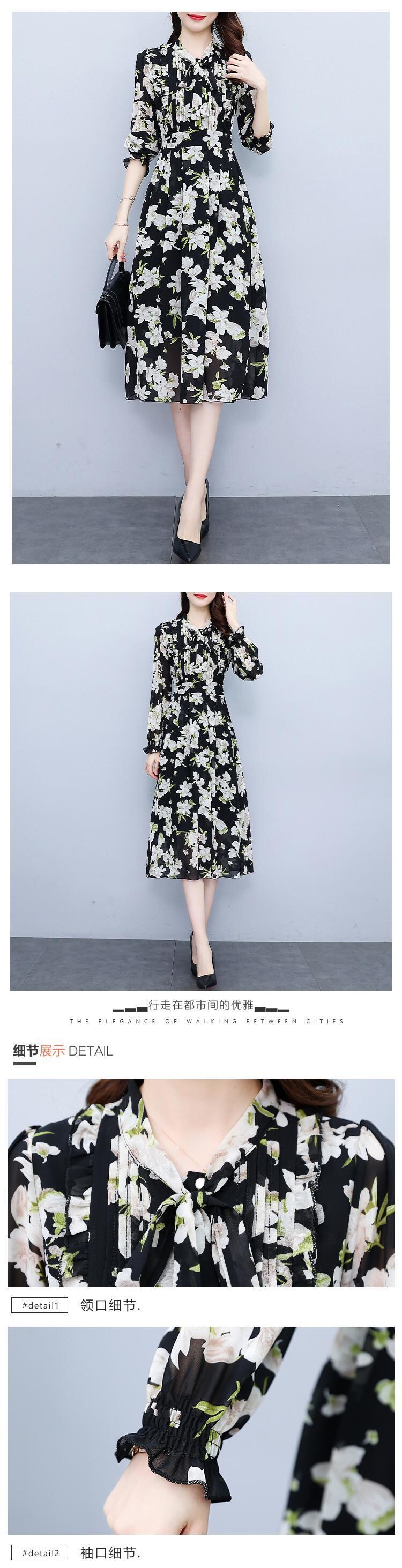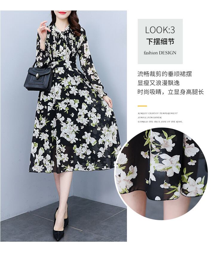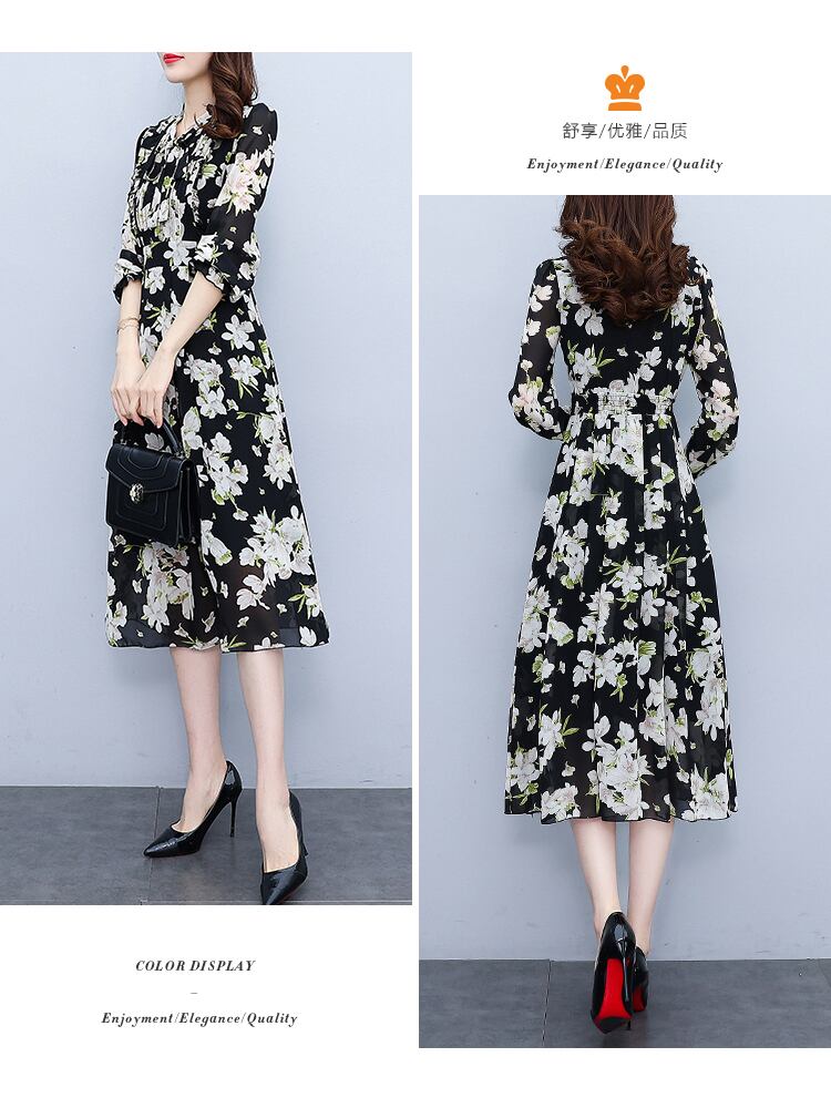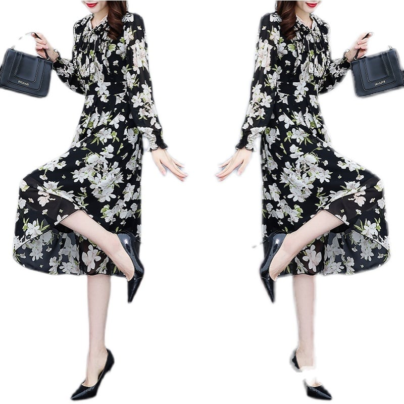 シフォンプリント柄ドレス オータム薄手ウェストロングスカート 大きめサイズ 秋物 muto43777791830