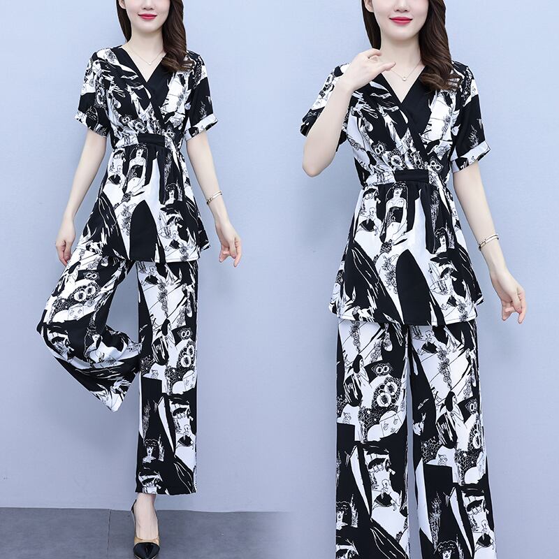 サマー薄手トップス パンツ セット 大きめサイズ 夏物 muto46183142693