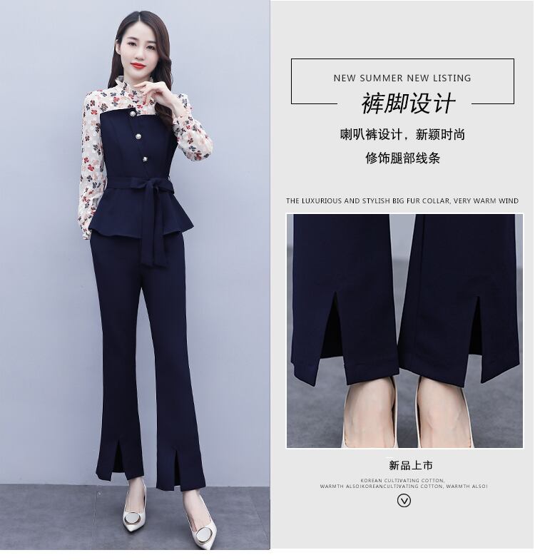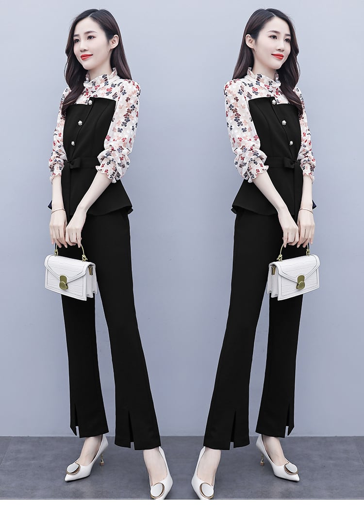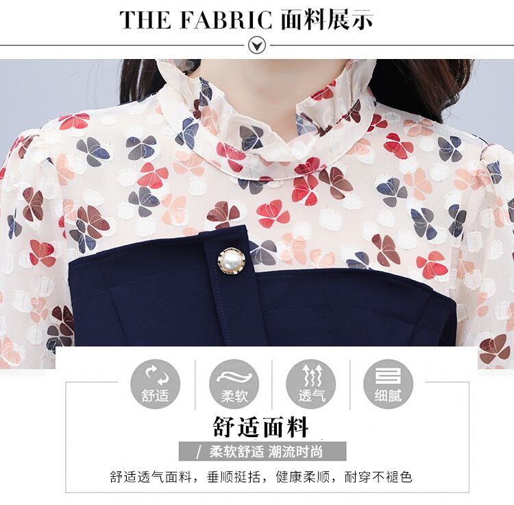 プリントオータム薄手シフォンシャツ トップス パンツ セット レッド 大きめサイズ 秋物 muto16694018192