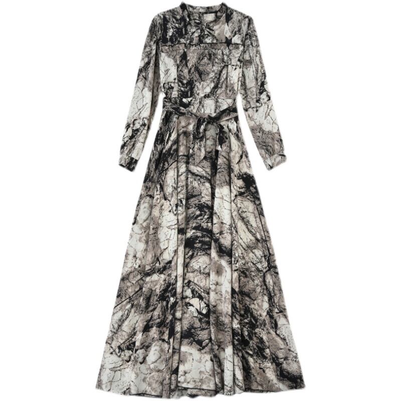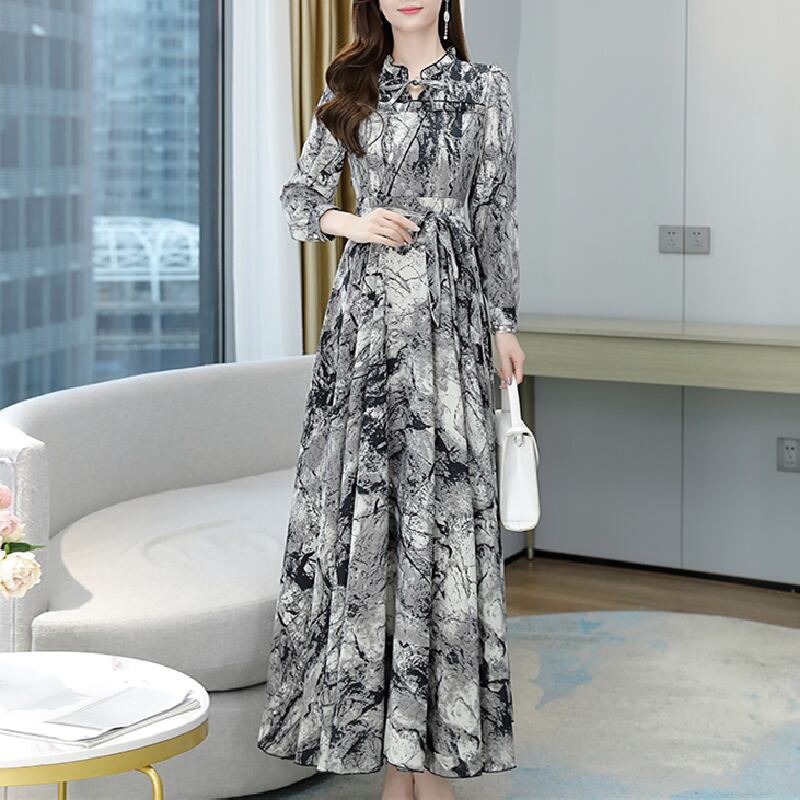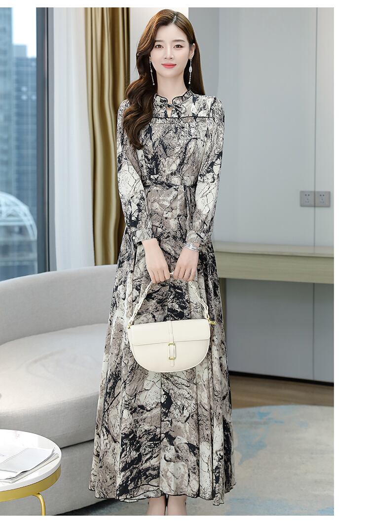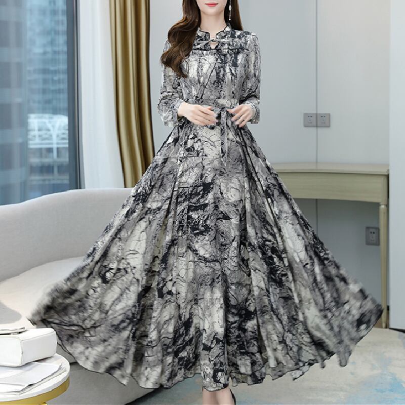 ロングシフォンドレス オータムスカート 大きめサイズ 秋物 muto49230965144