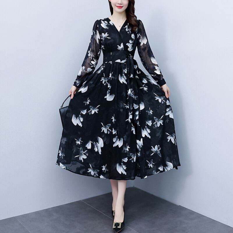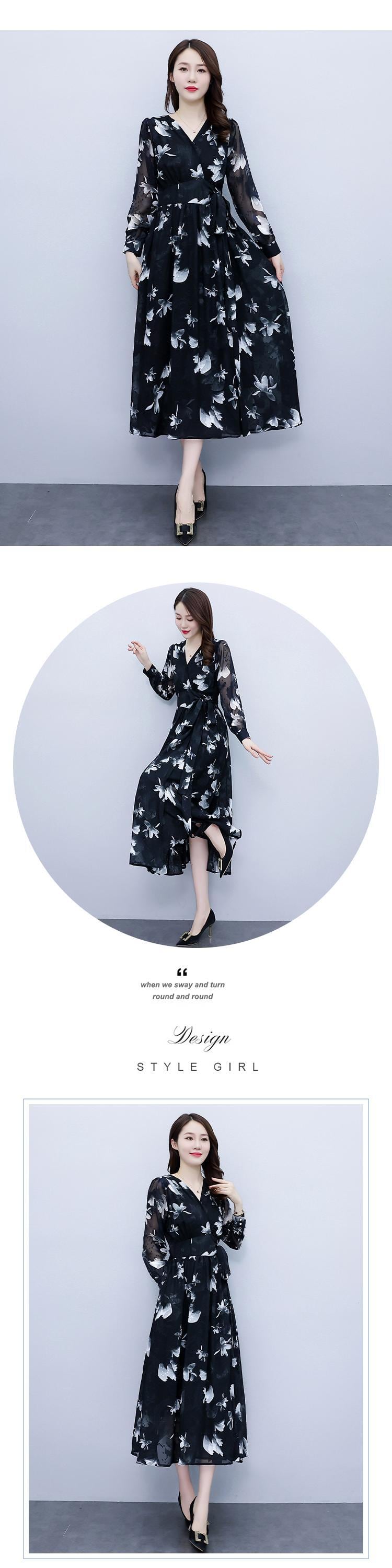 フローラルシフォンドレス オータム薄手アンクルスカート ロング 大きめサイズ 秋物 花柄 muto894068130
