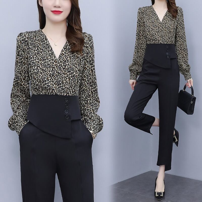 レディースオータムスリムレオパードプリント柄 大きめサイズ 秋物 ステッチ muto82384543218