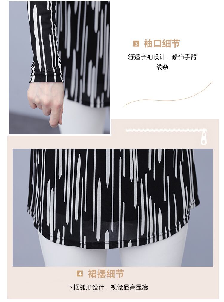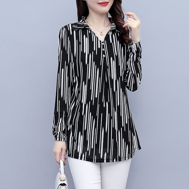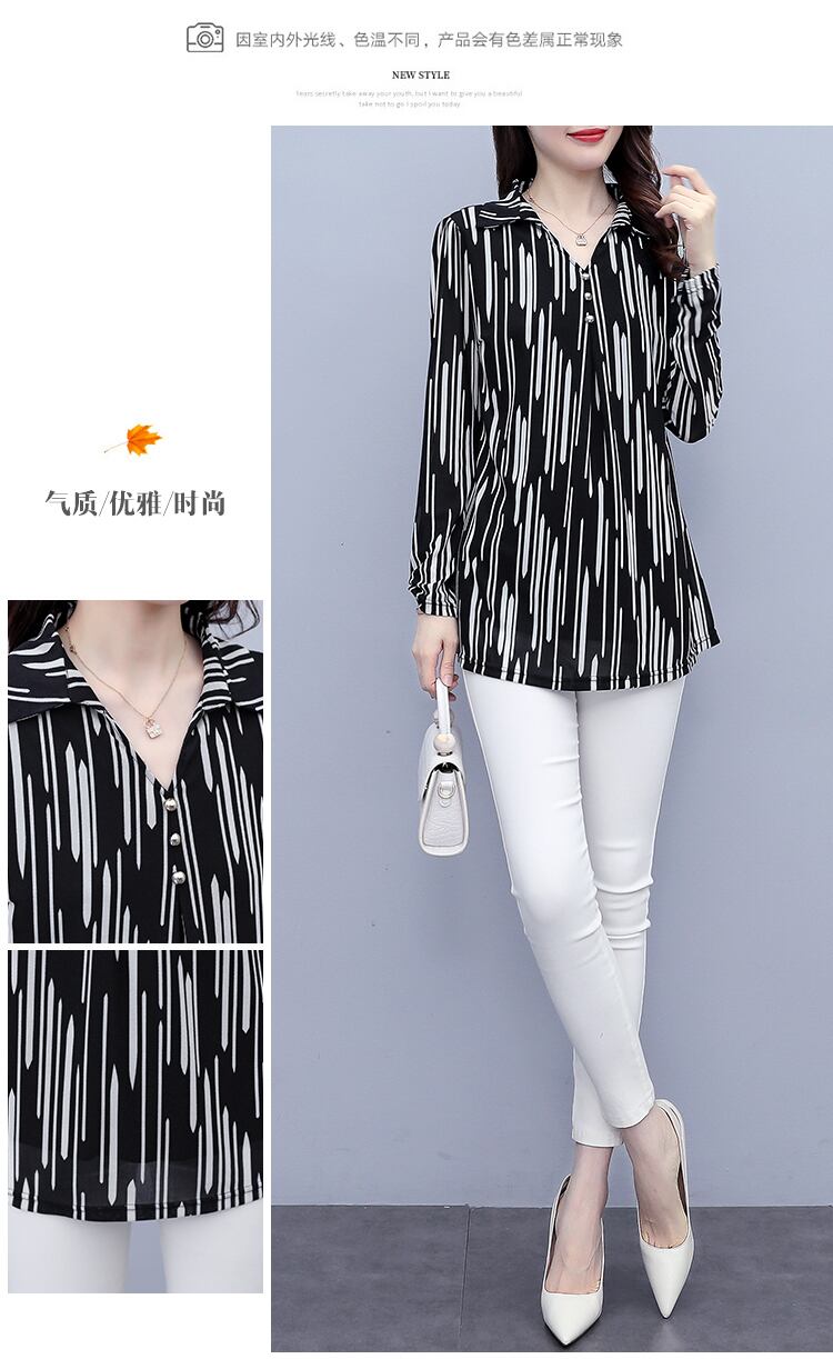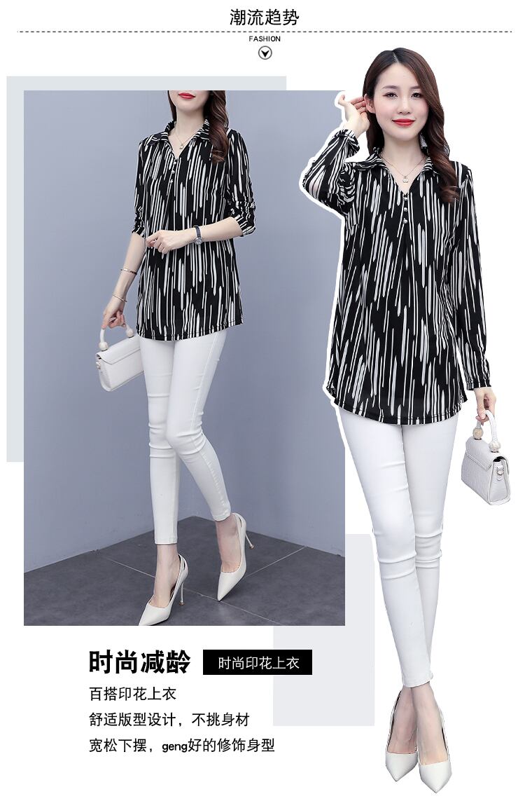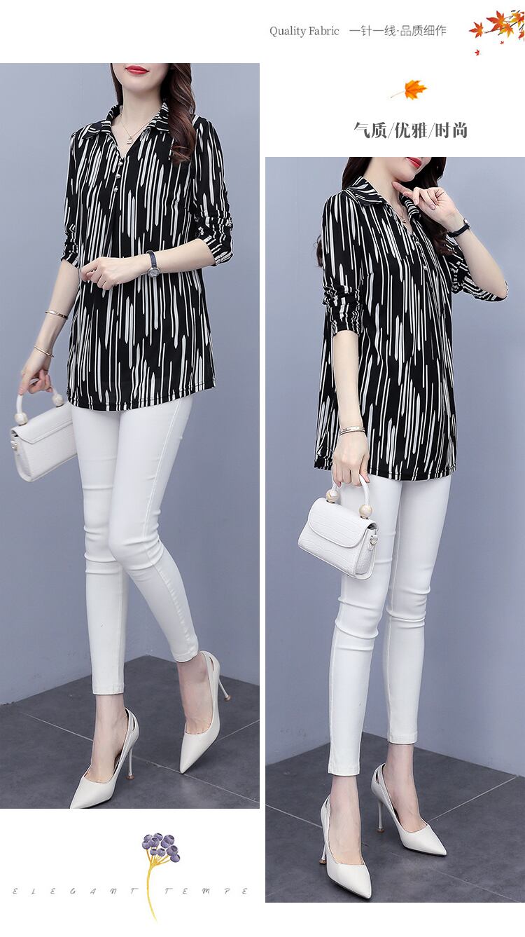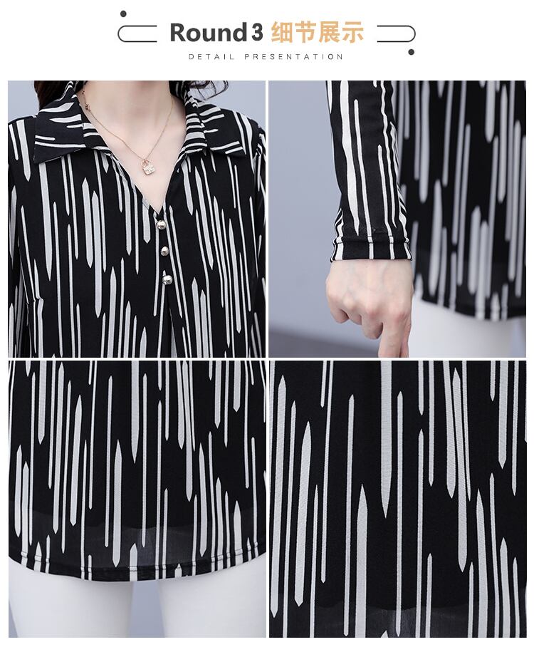 ストライプトップス オータム薄手シャツ 大きめサイズ 秋物 ステッチ muto45343632097