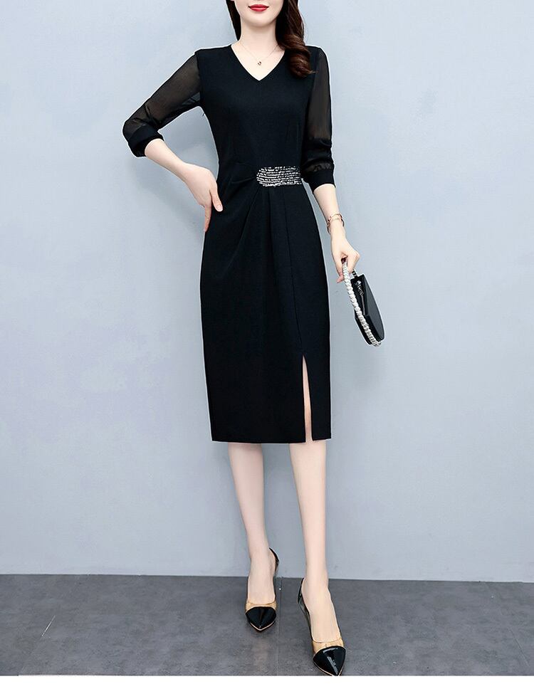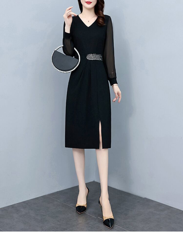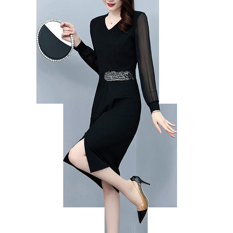 ドレス オータムスリムフィット薄手スタイルブラックスカート 大きめサイズ 秋物 muto60545674208