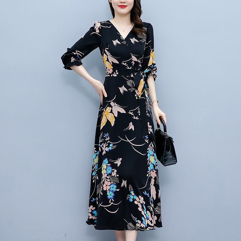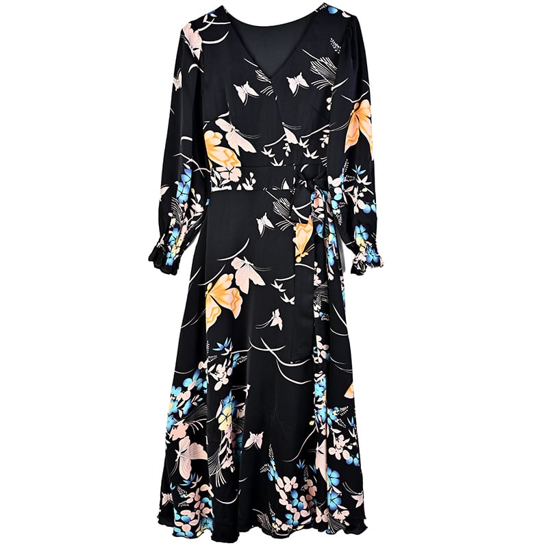 フローラルシフォンドレス オータムロングスカート 大きめサイズ 秋物 花柄 muto15564772900