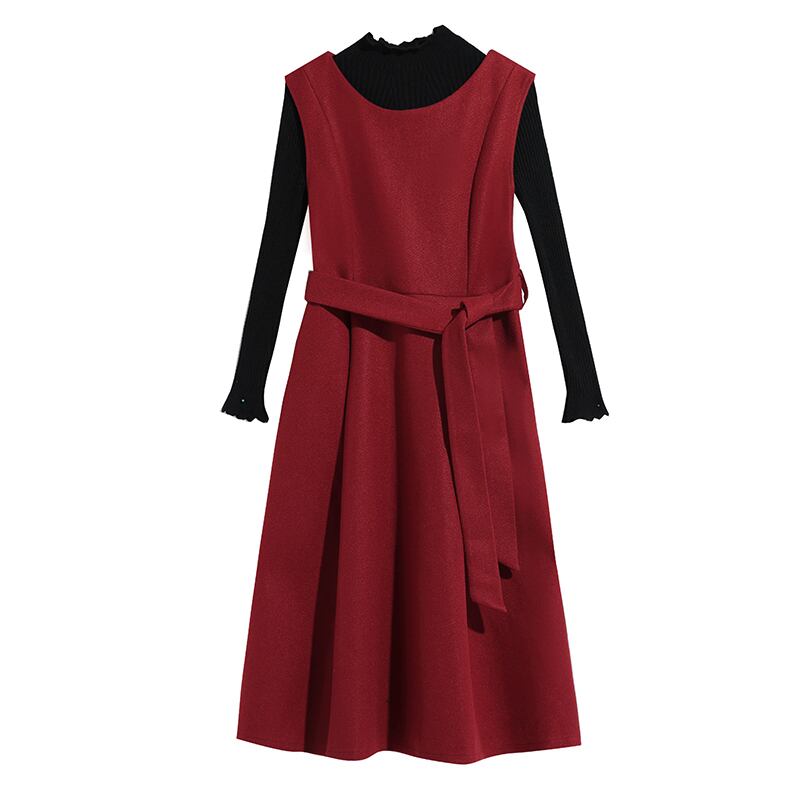 ウールスカート セット オータムウィンタースタイルニットドレス 大きめサイズ 秋物 冬物 muto10877309650