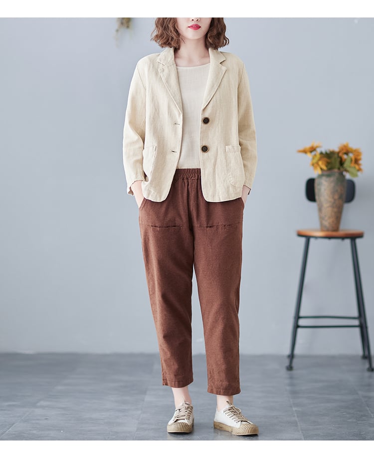 スリムトップス オータムボタンショートジャケット ロング コットン 大きめサイズ 秋物 muto76160234103