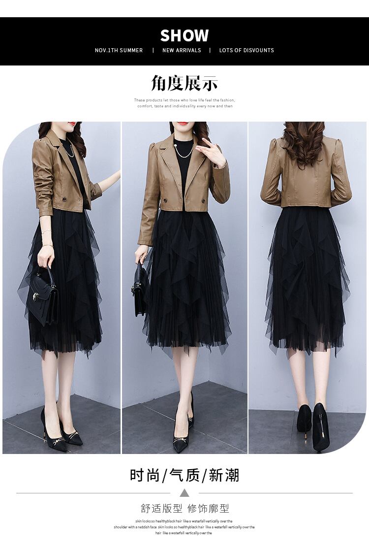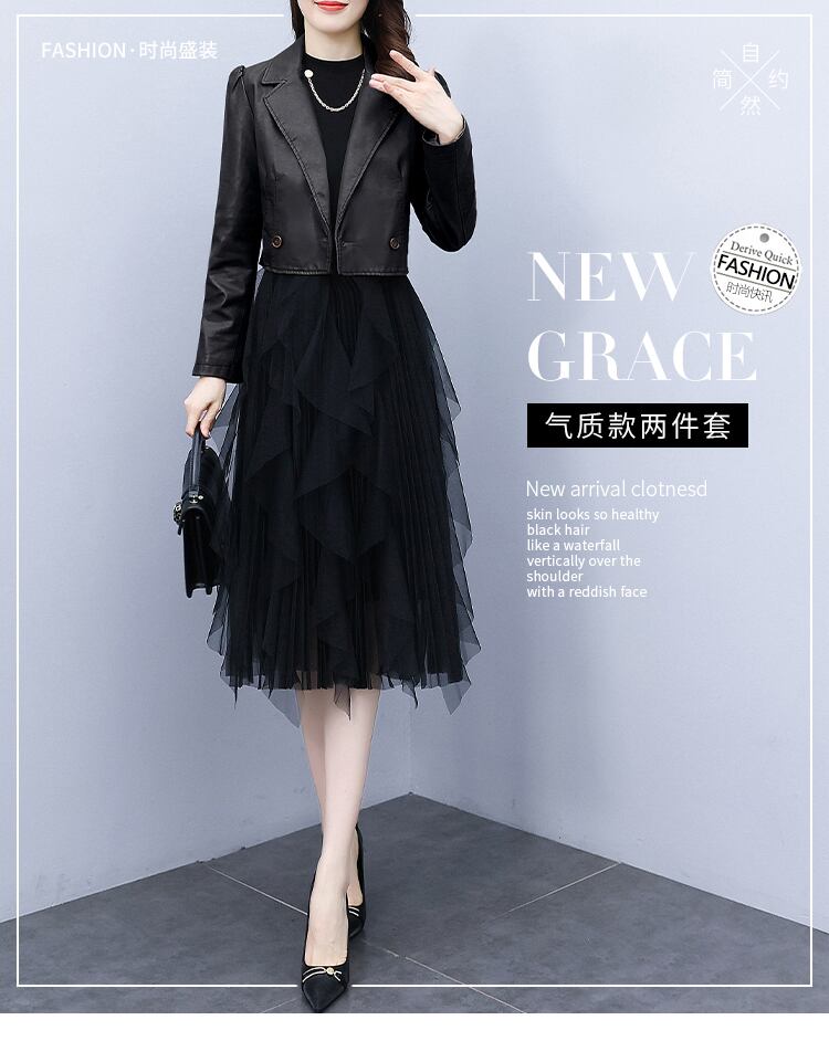 スカート オータムショートレザージャケット メッシュドレス 大きめサイズ 秋物 muto99681565127