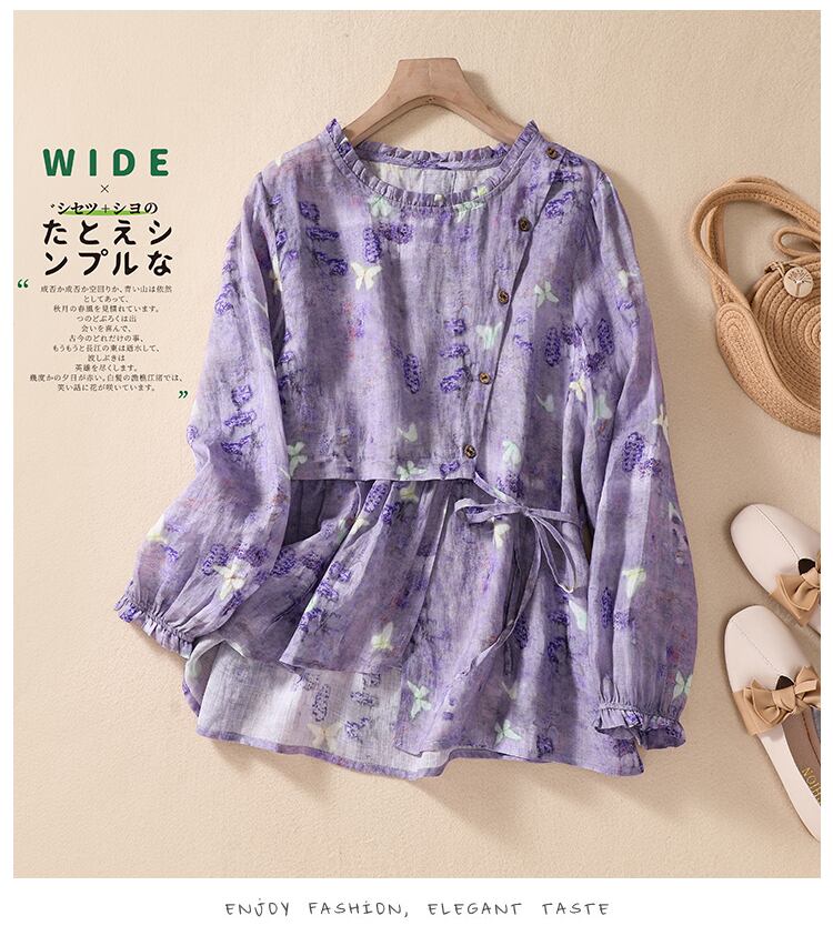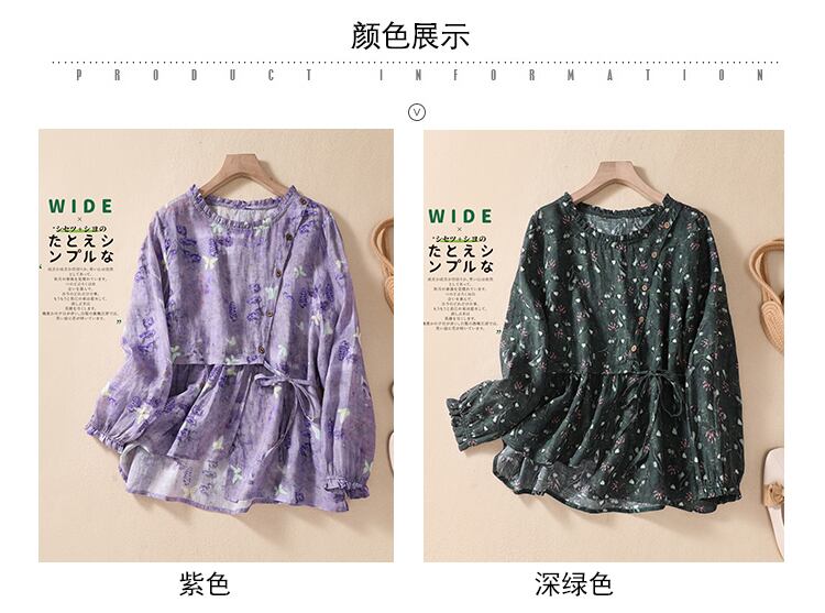 トップス スプリングオータムルーズスリムスタンダードフローラルTシャツ シャツ ロング レトロ 大きめサイズ 春物 秋物 花柄 muto3726651040