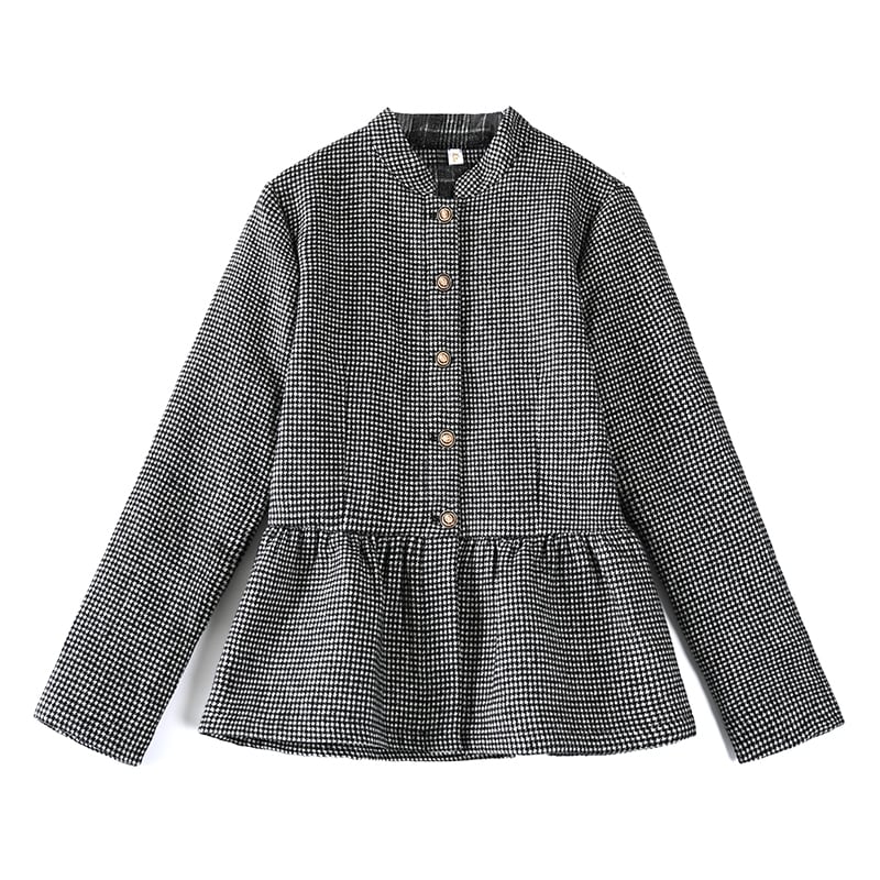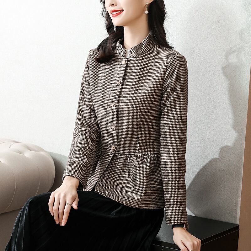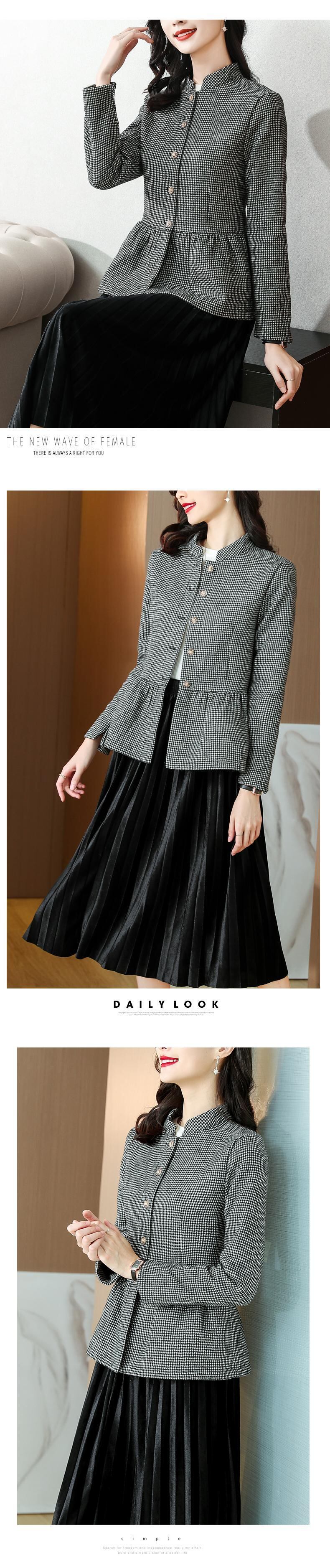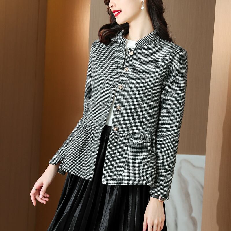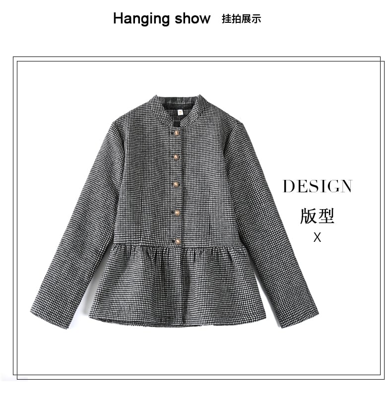 ショートジャケット オータムスリム格子柄トップス 大きめサイズ 秋物 muto56154107443