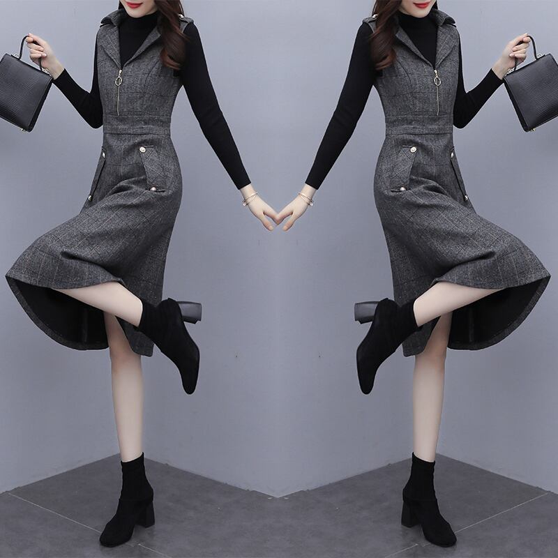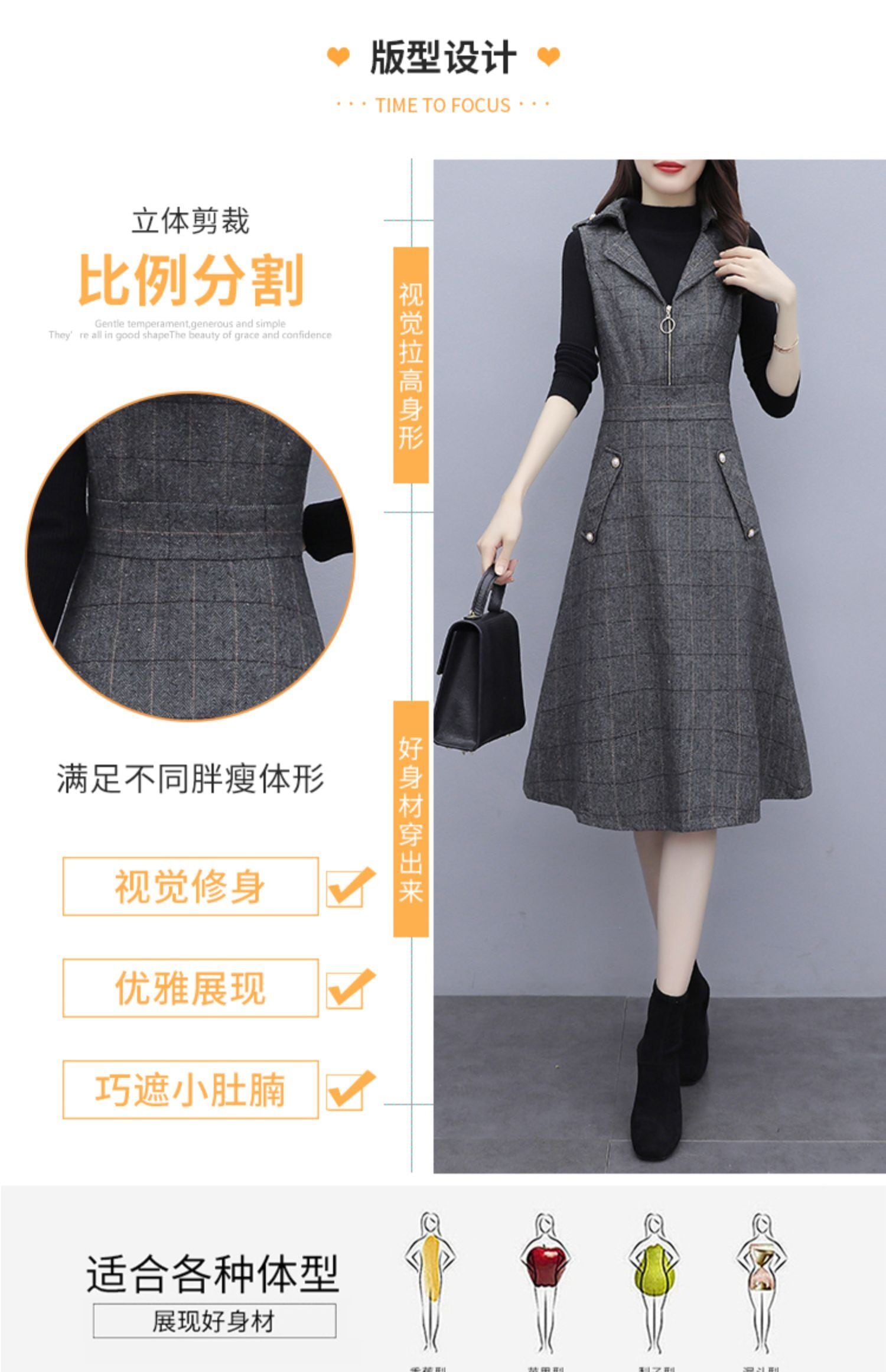 格子柄ドレス スプリングオータムスカート スリム 大きめサイズ 春物 秋物 muto72384031363