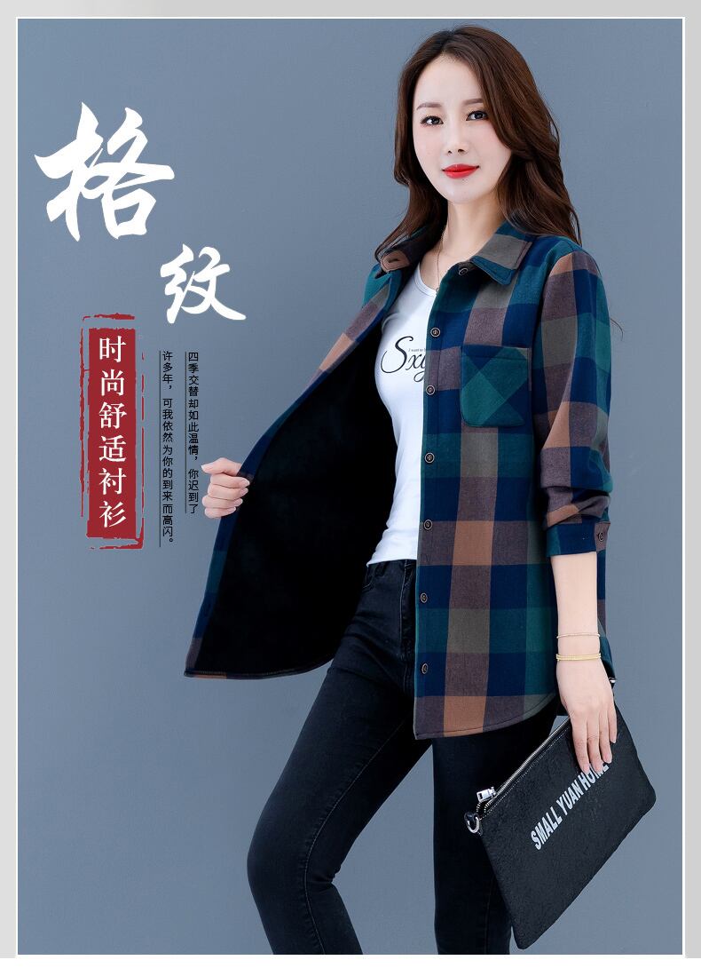 ベルベット格子柄シャツ オータムウィンタールーズカジュアルコート 大きめサイズ 秋物 冬物 muto90356496658