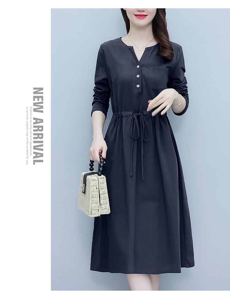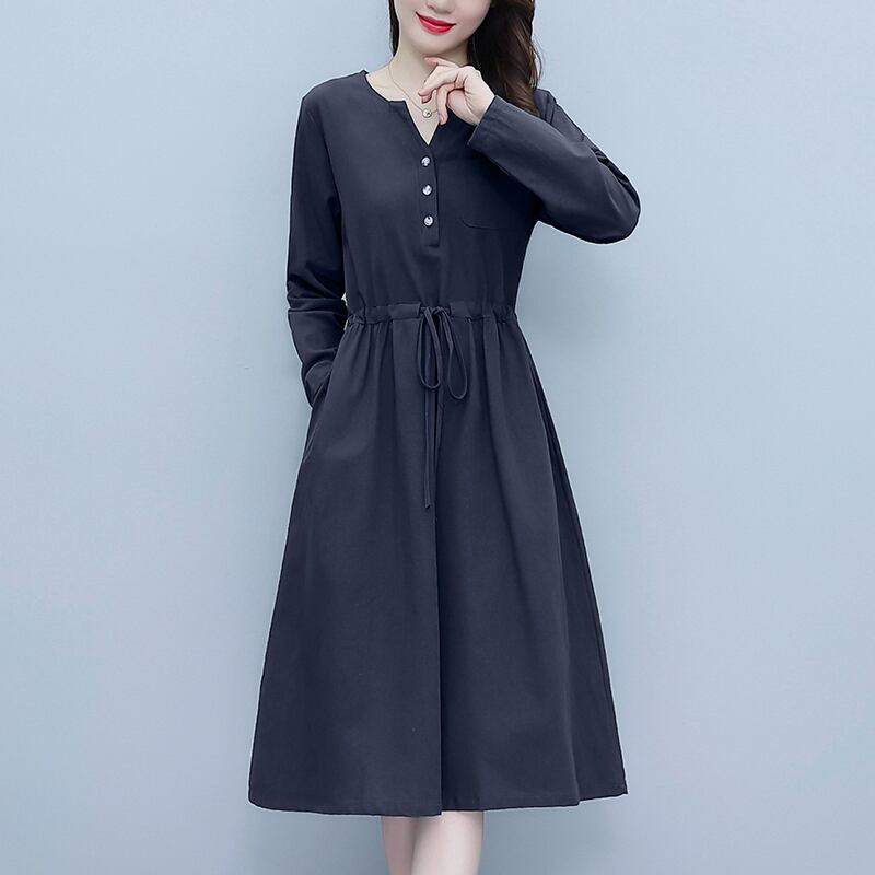 ドレス スプリングオータムスタイル薄手ウェストスカート ロング コットン 大きめサイズ 春物 秋物 muto29079110350