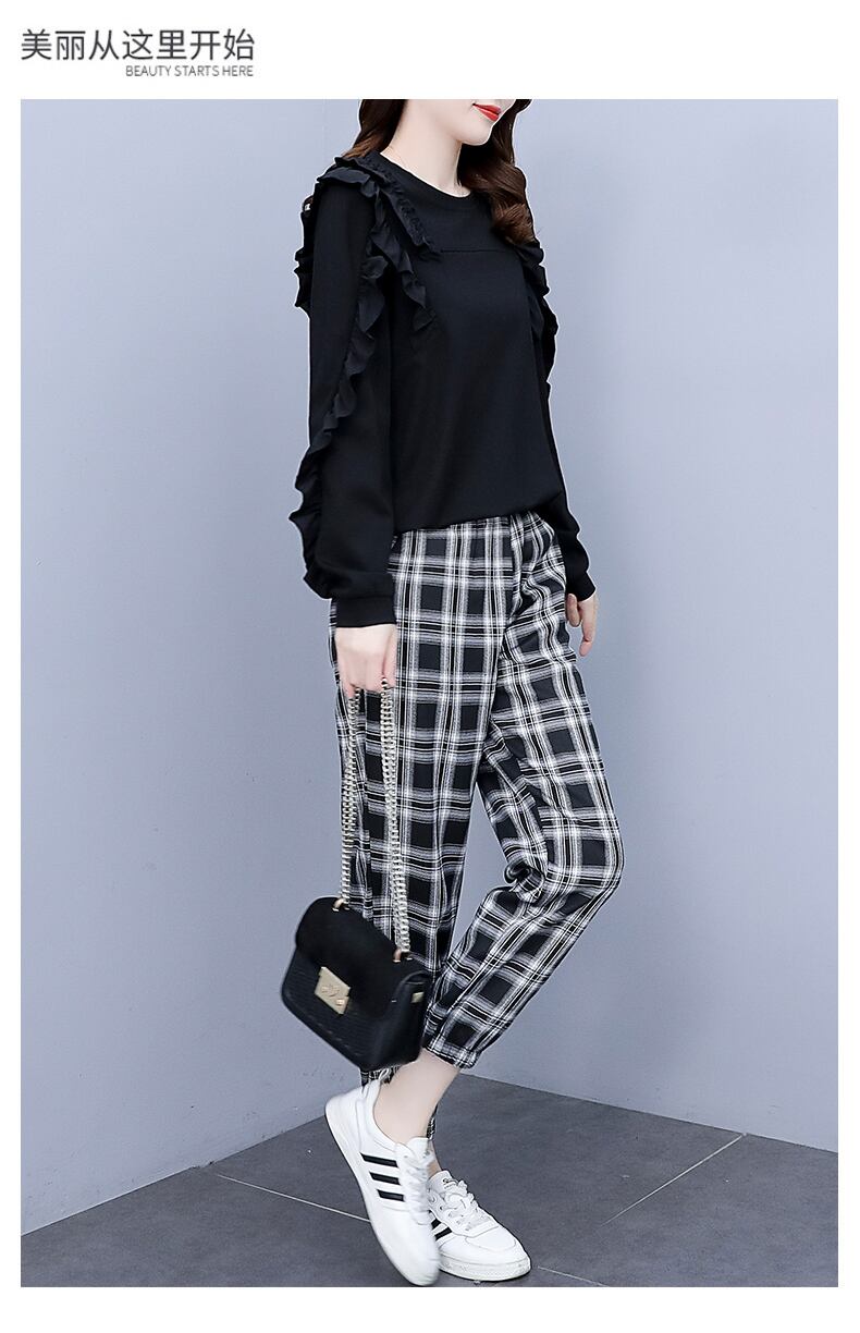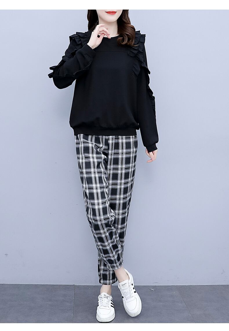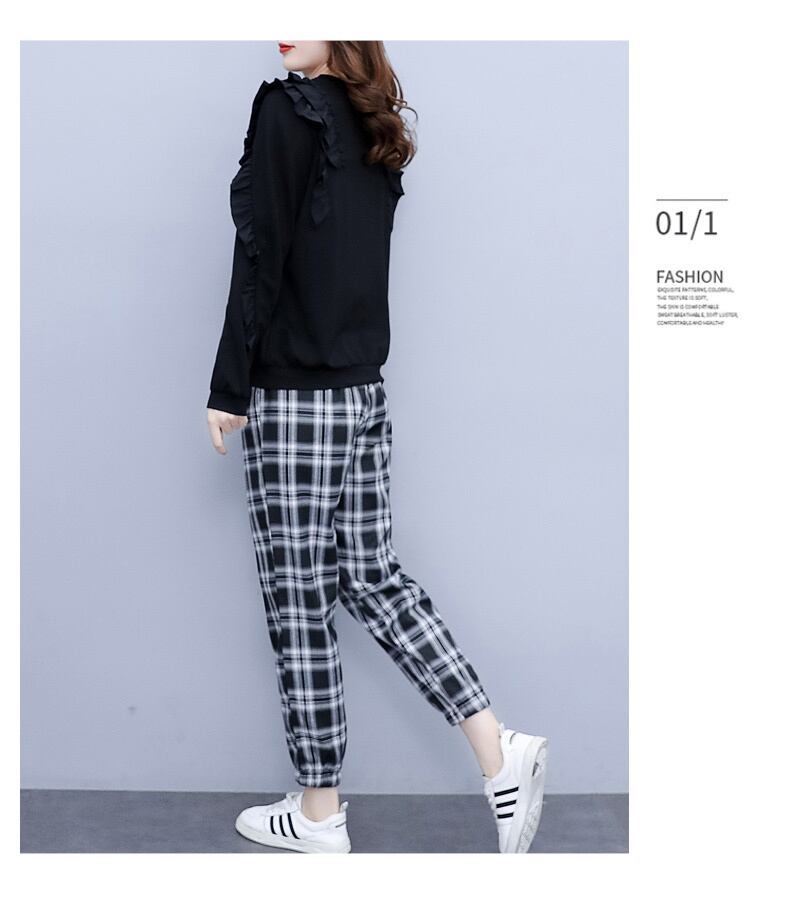 薄手オータムセーター 格子柄パンツ セット 大きめサイズ 秋物 muto81463907481