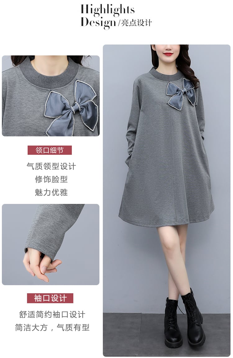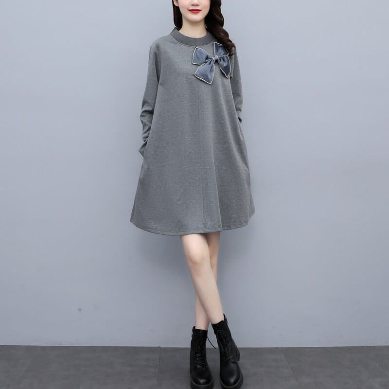 リボンスカート オータム薄手ドレス ロング 大きめサイズ 秋物 muto41523331159
