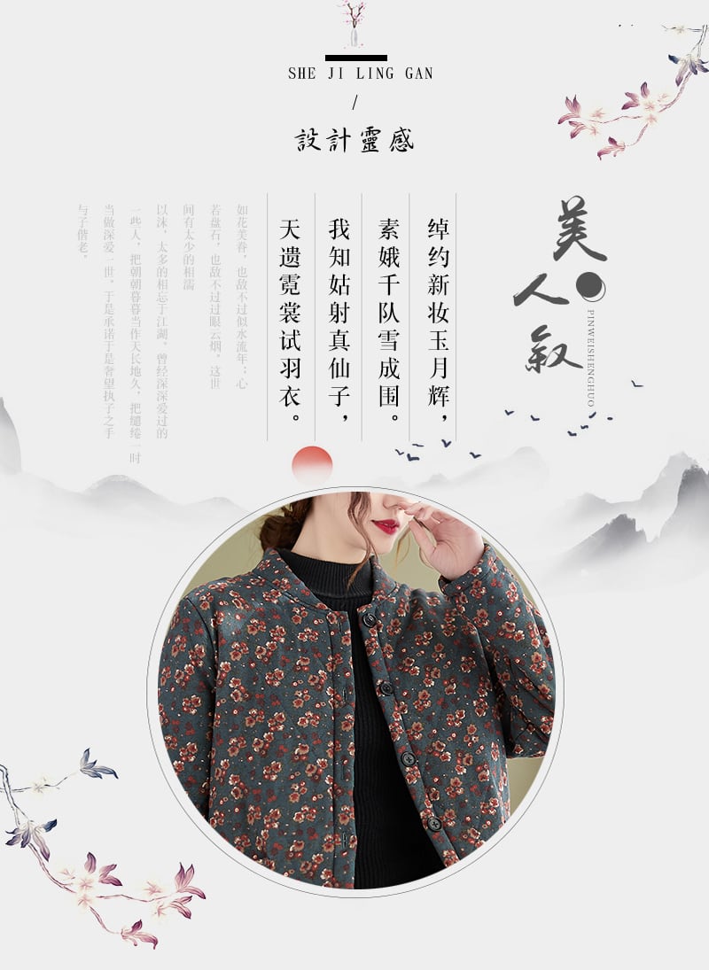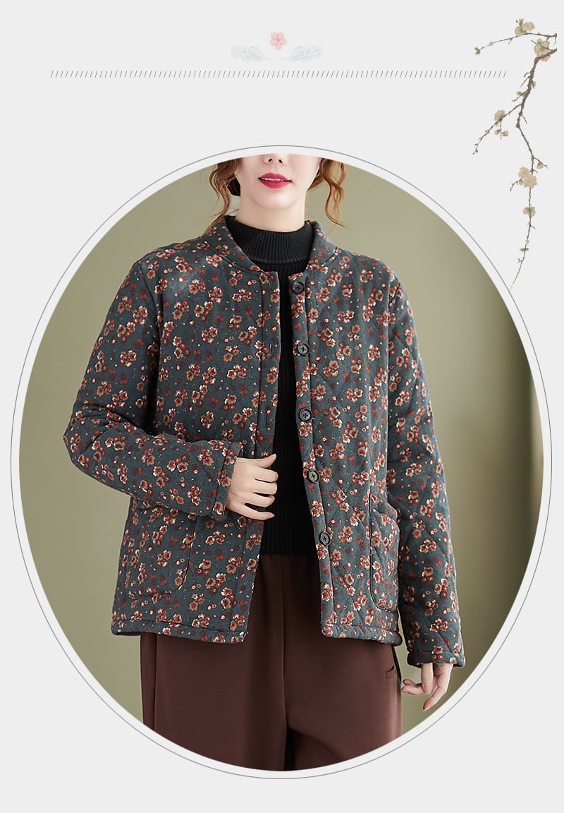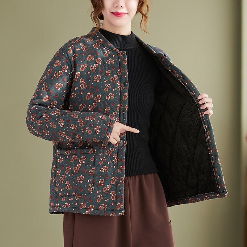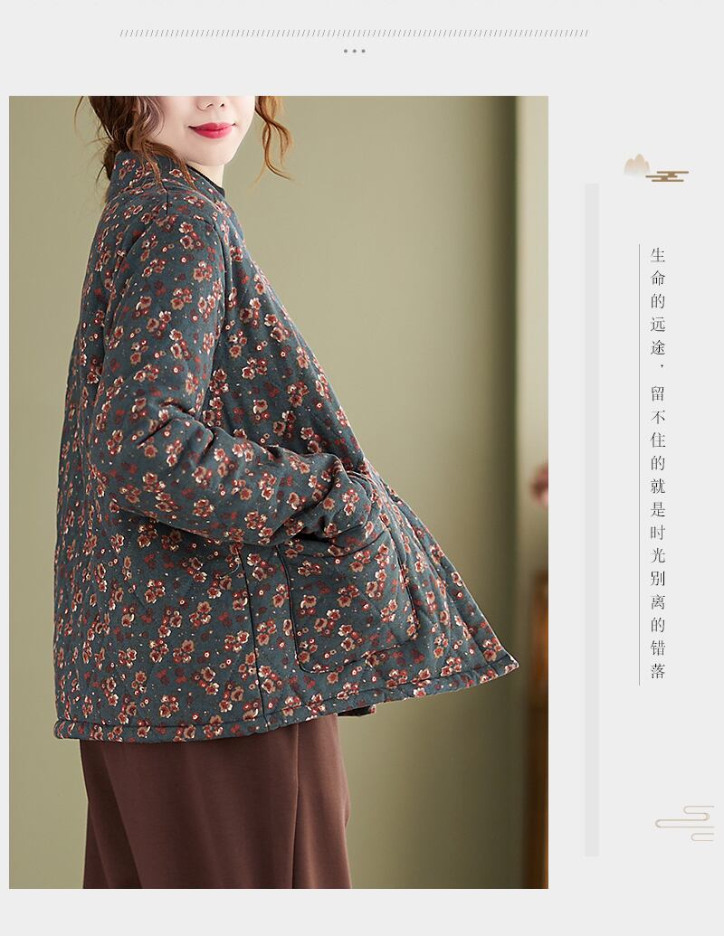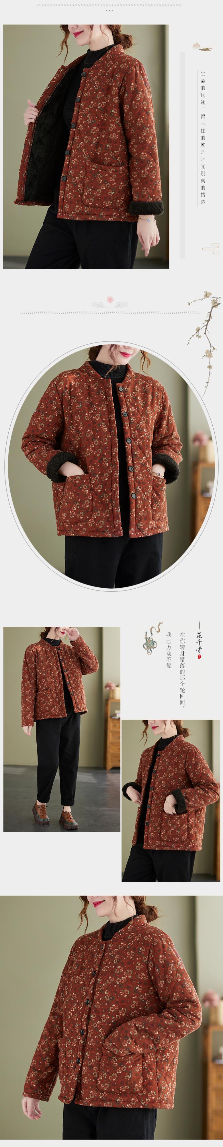 エスニックスタイルフローラルコート ウィンター薄手ルーズカラーベルベットジャケット コットン 大きめサイズ 冬物 花柄 muto80886413371