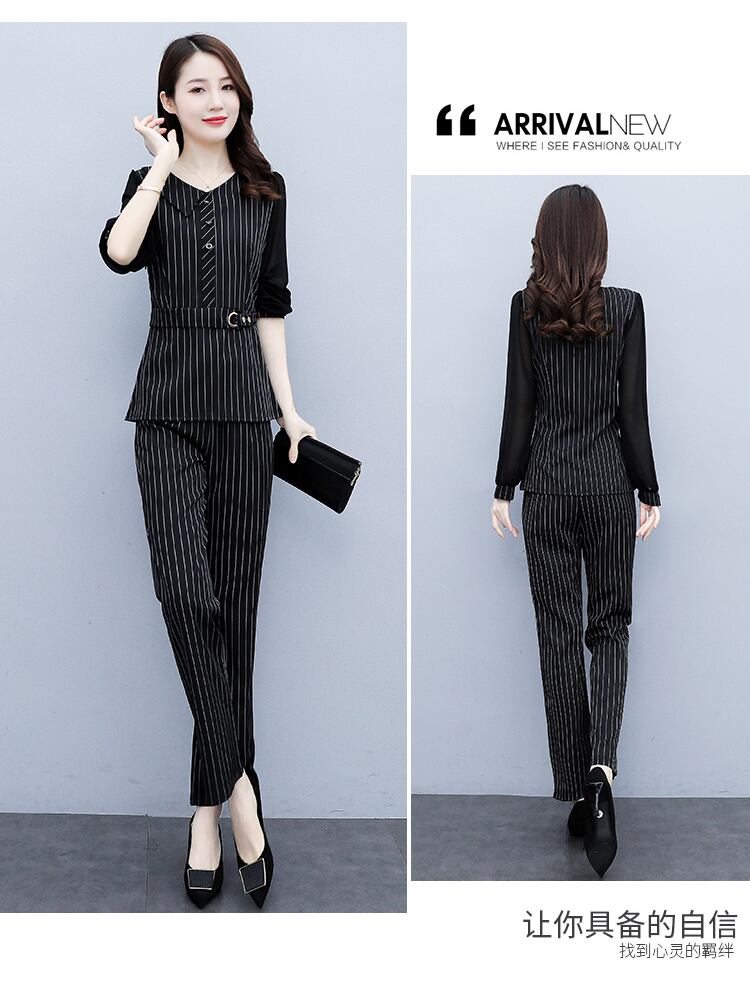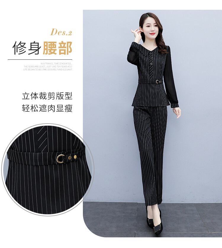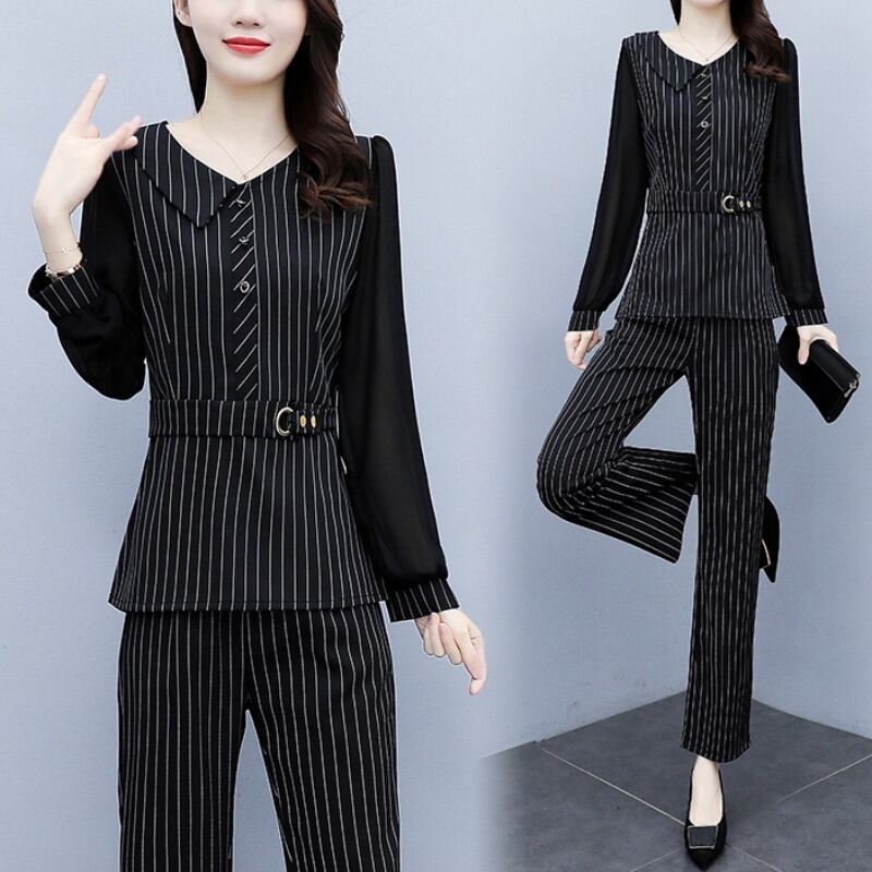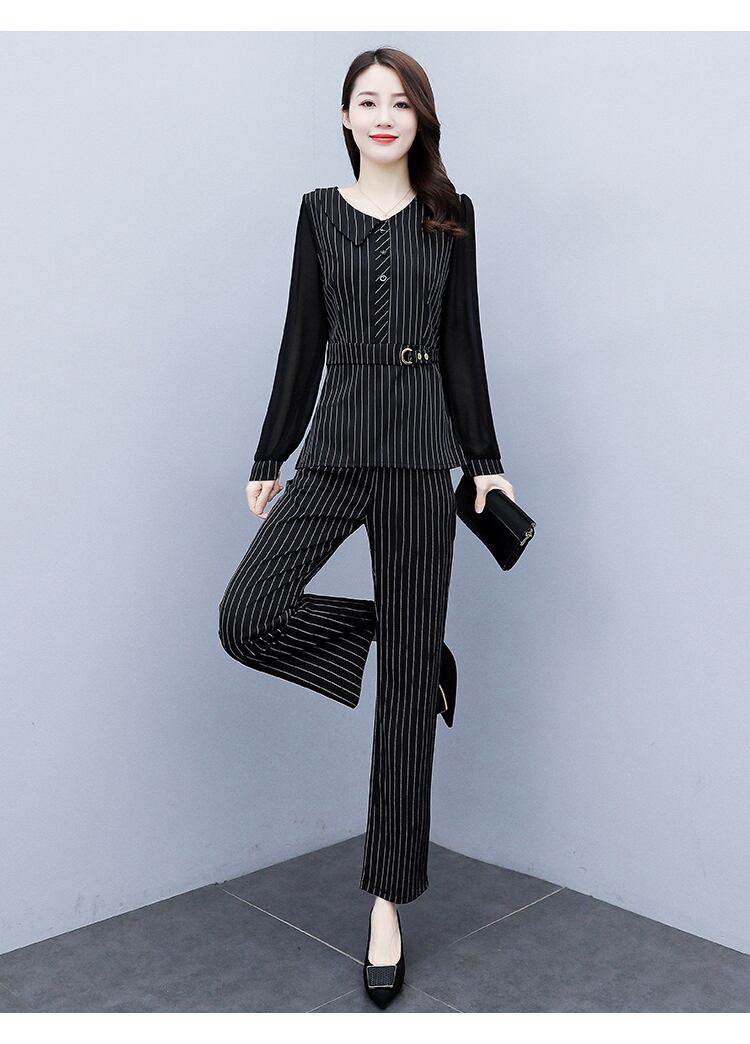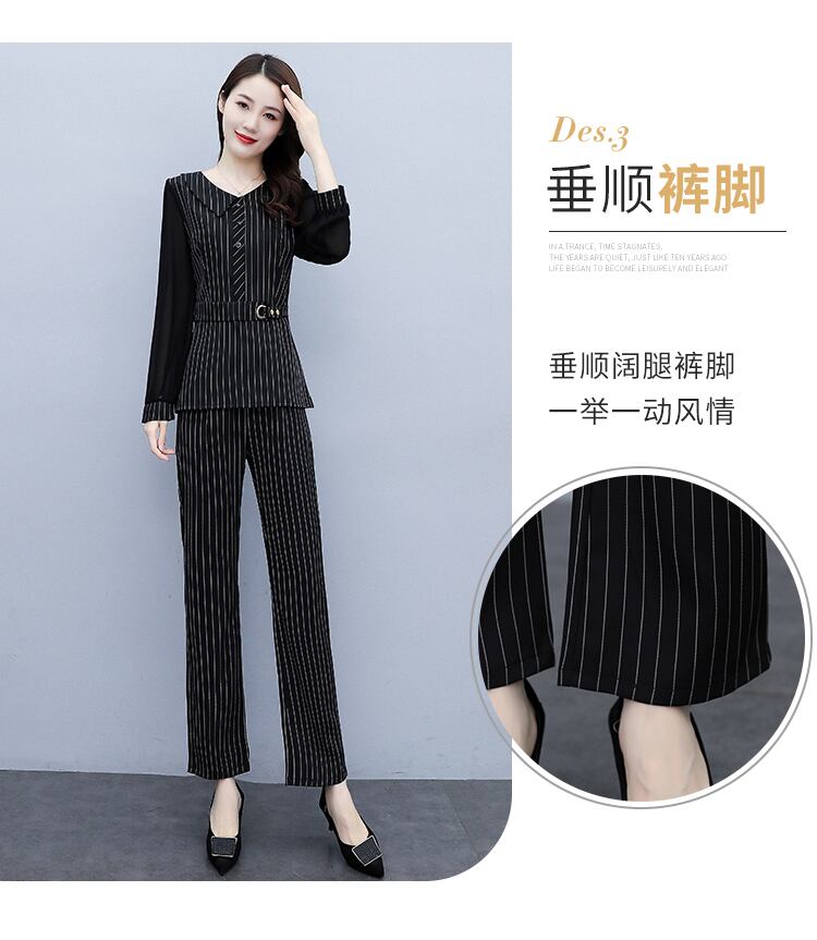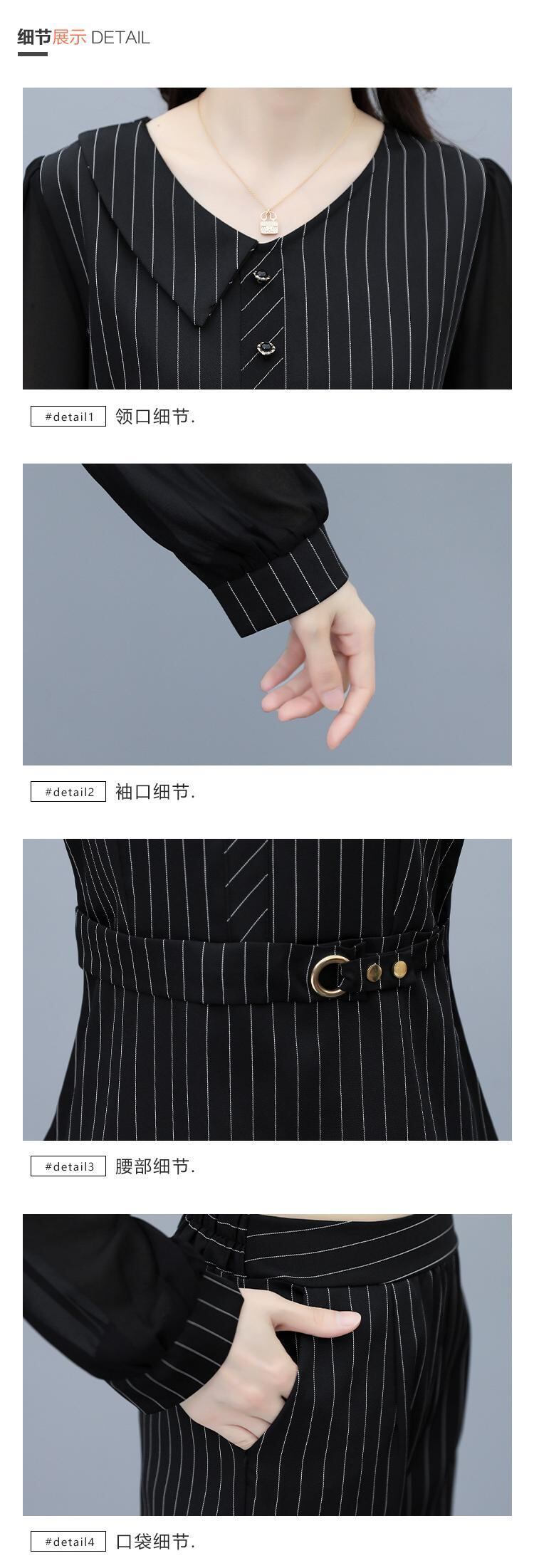 ストライプオータムドレス スタイルウェストスリムパンツ レッド 大きめサイズ 秋物 muto76805035712