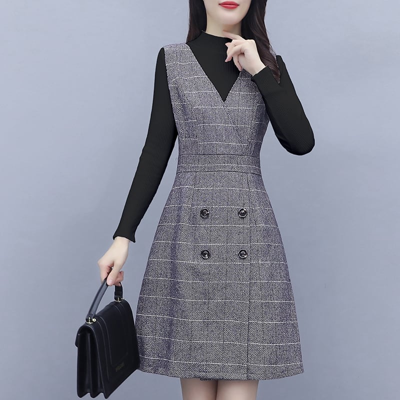 格子柄ドレス オータムウィンタースカート 大きめサイズ 秋物 冬物 muto93127342467