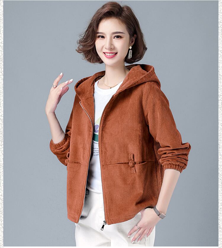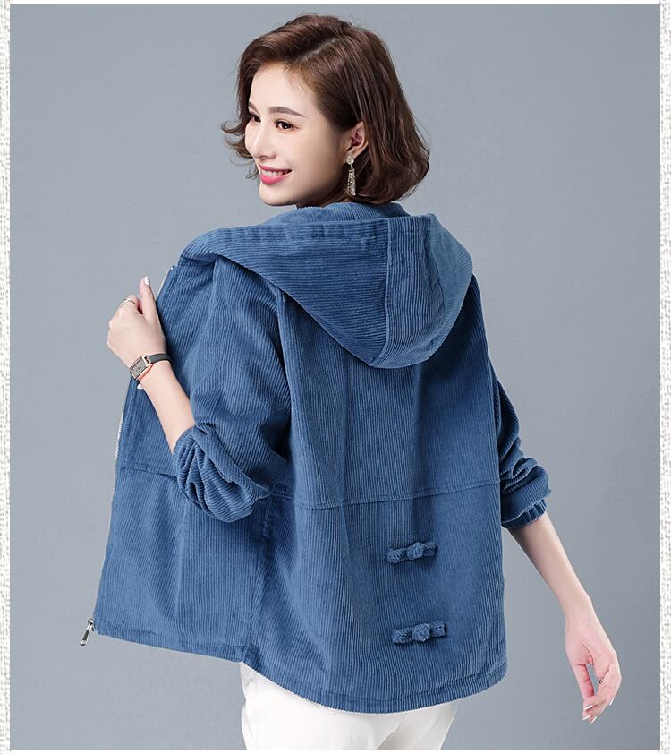 コーデュロイショートジャケット スプリングオータムルーズフードカジュアル 大きめサイズ 春物 秋物 muto18418573256