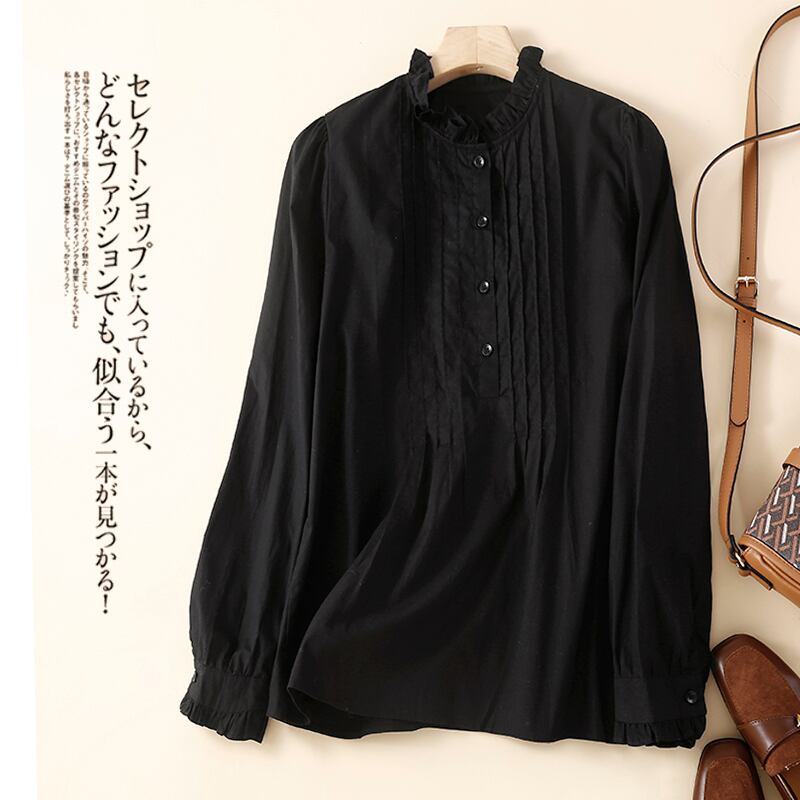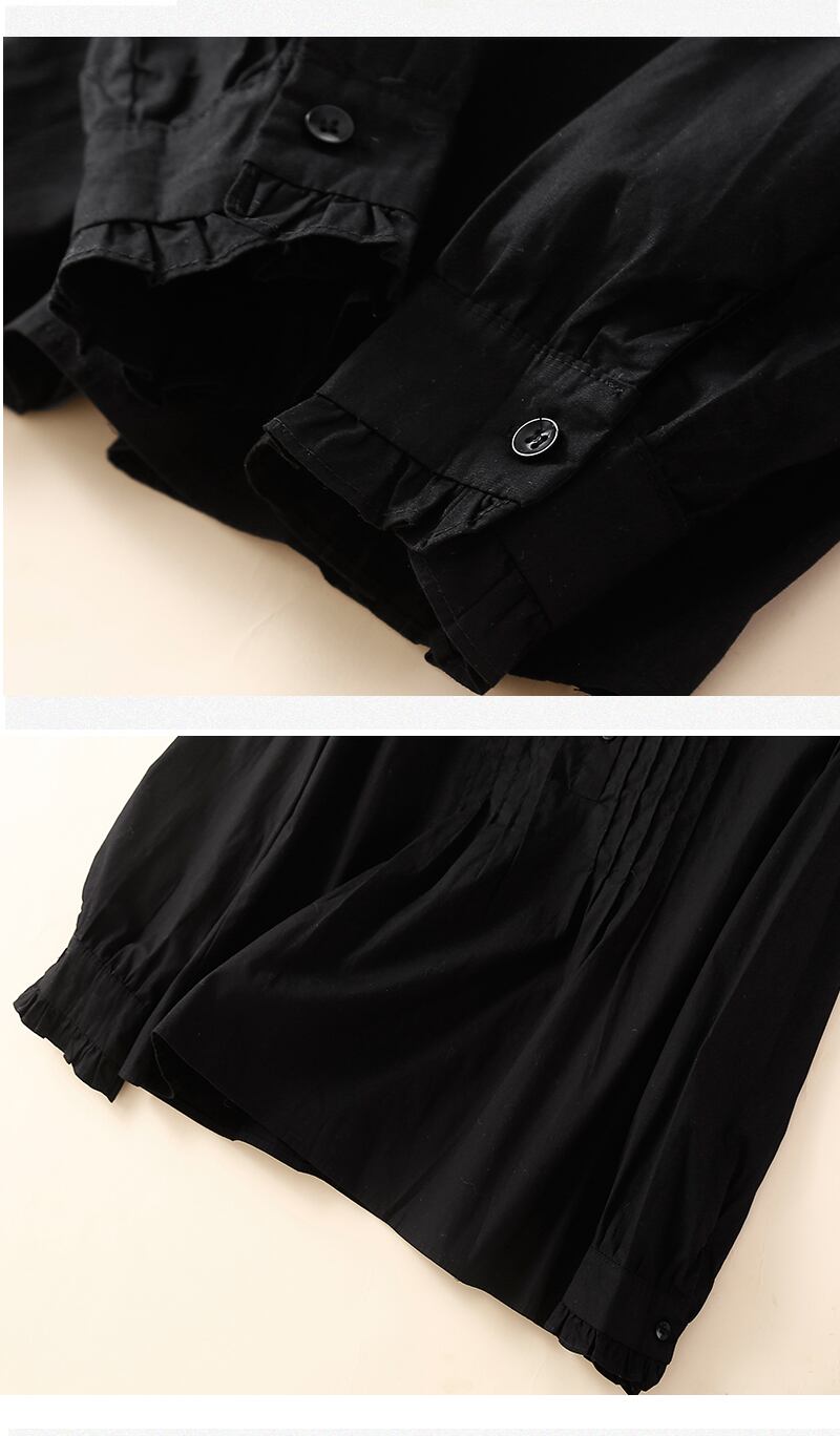 スタンダードレースカラーブラックシャツ オータムルーズ薄手Tシャツ トップス ロング レトロ 大きめサイズ 秋物 muto54681855905