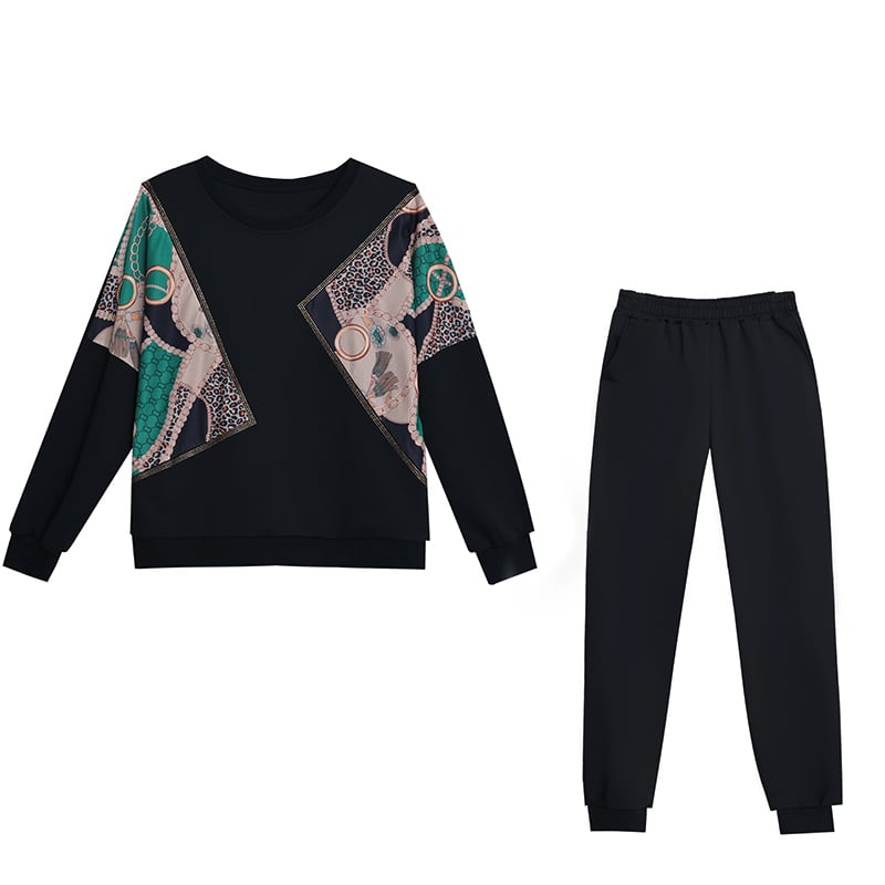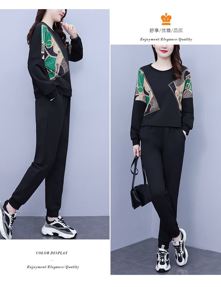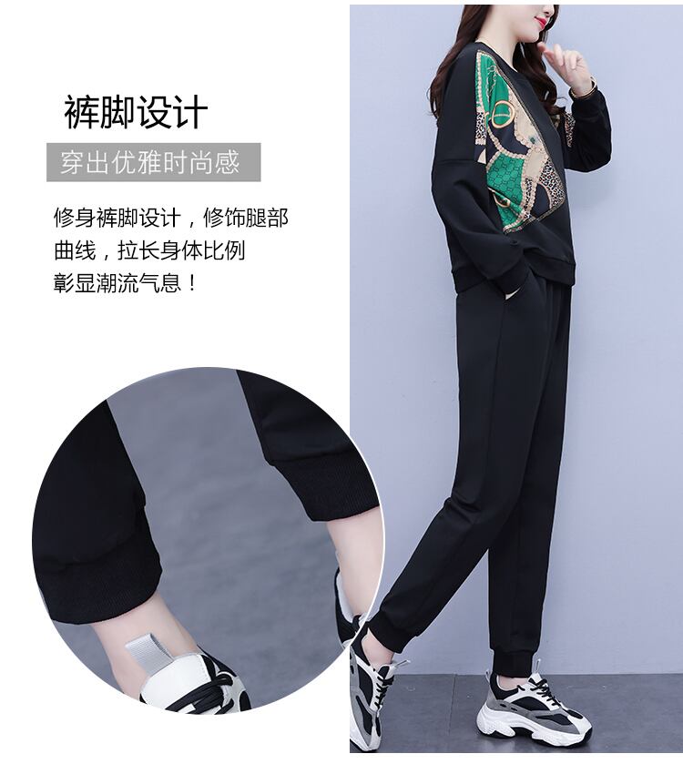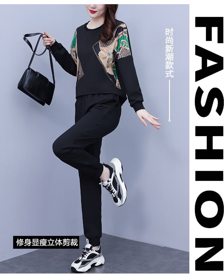 ラウンドネックオータムルーズウェスト薄手パンツ セット 大きめサイズ 秋物 Oネック ステッチ muto43723097266