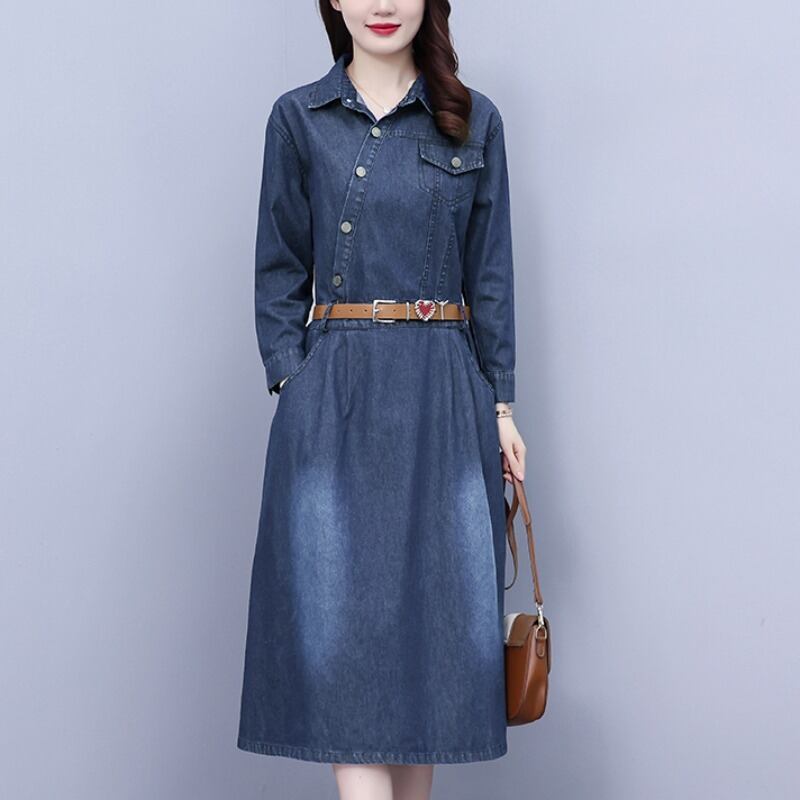 スタンダードスカート ドレス オータム薄手ロング レトロ 大きめサイズ 秋物 muto88185099682