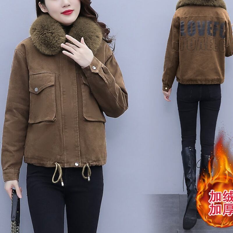 ベルベットジャケット ウィンターショートファーカラー コットン 大きめサイズ 冬物 muto27975359971